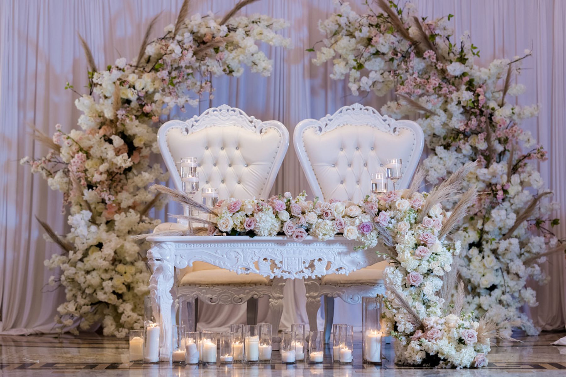 A romantic wedding theme is all about soft colors, dreamy details, and heartfelt moments that make guests swoon. Think candlelit tables, flowing fabrics, delicate florals, and a palette of blush, cream, and gold. Every detail—from the gentle music to the handwritten vows—evokes love and intimacy, creating an atmosphere that feels timeless and filled with emotion..