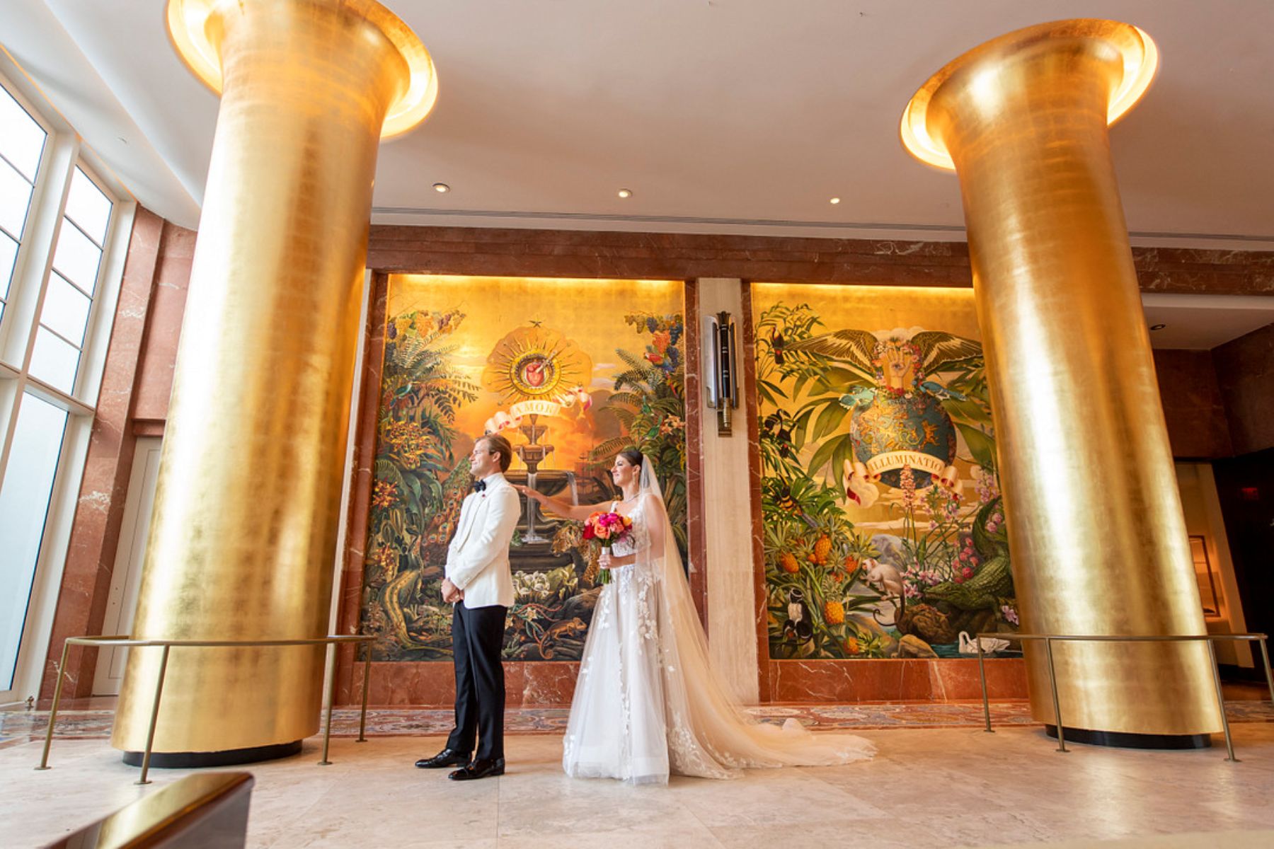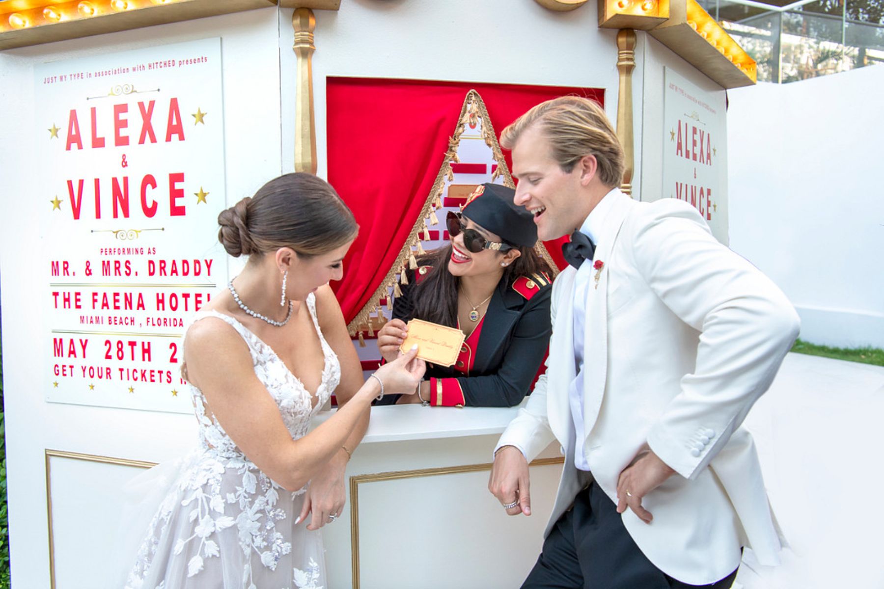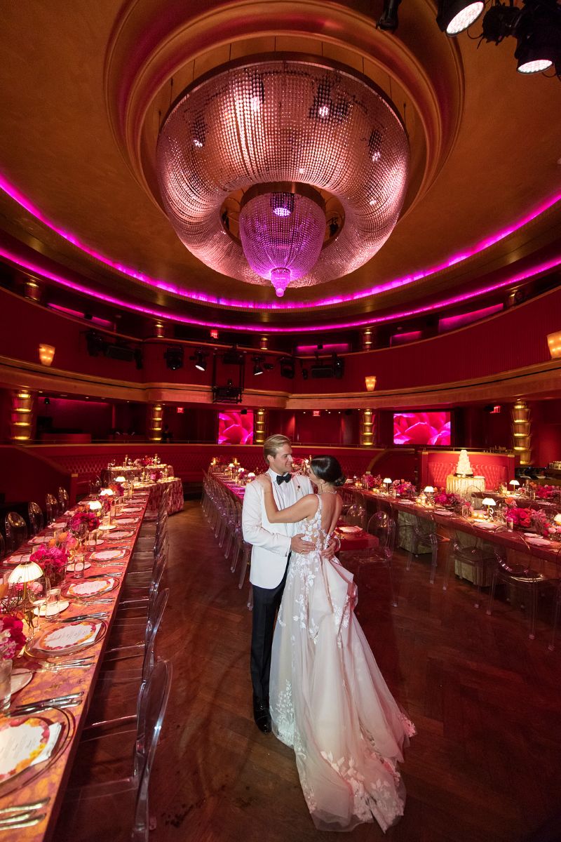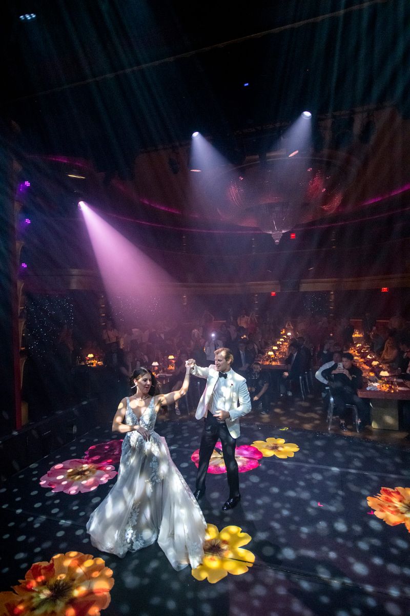 From the start, the couple knew they didn’t want a typical wedding. They envisioned their big day as a grand performance—and thanks to the incredible planning of Chris Weinberg Events, their vision came to life. Guests were treated to an unforgettable experience, stepping into the iconic Faena Theater, transformed into the couple’s very own stage.