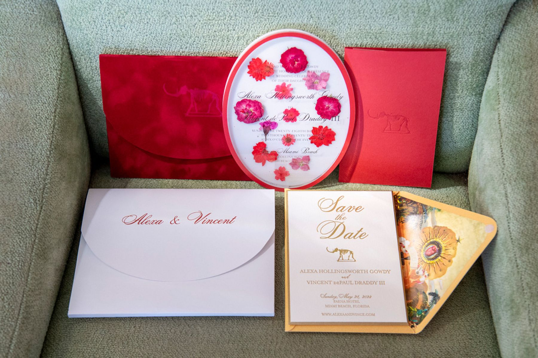 Photographer: Domino Arts Photography | Event Planner: Chris Weinberg Events | Reception Venue: Faena Miami Beach | Makeup Artist: Tatjana Terzic | Other: Bless the Dress | Design and Decor: Guilded Group Decor | Invitation Designer: Boxed Wedding Invitations | Band: Tropics Entertainment | DJ: Chris Clouse | Lighting: Magen Boys