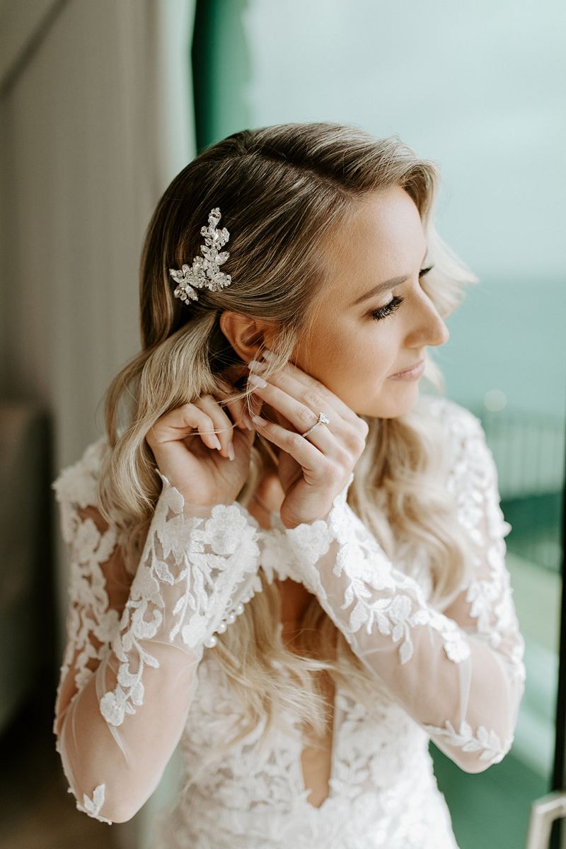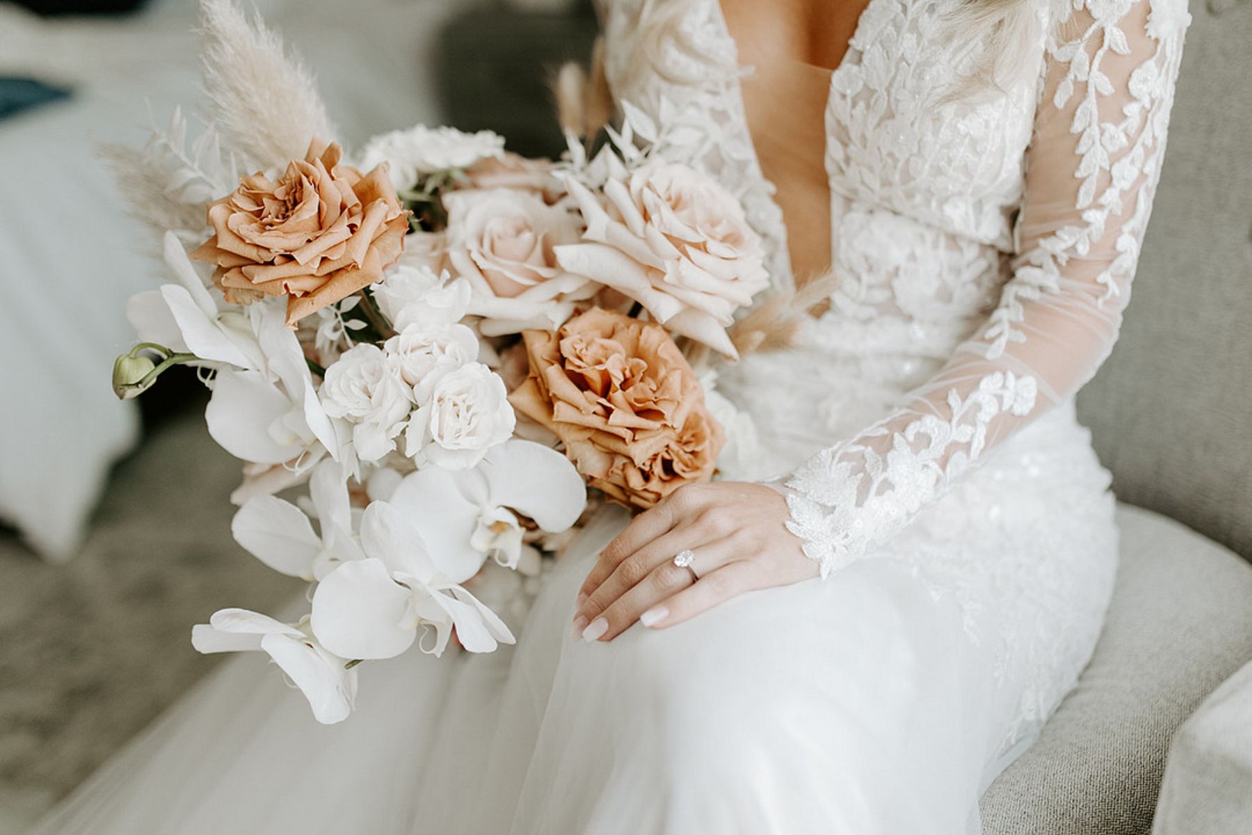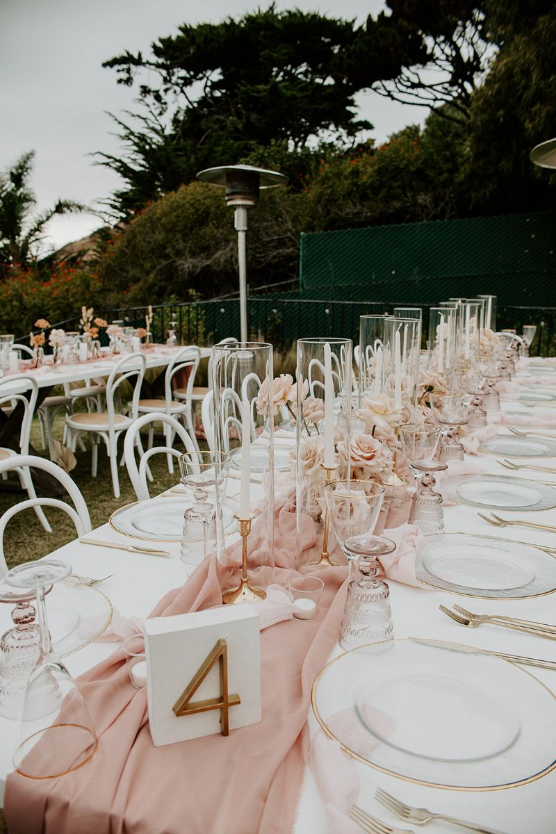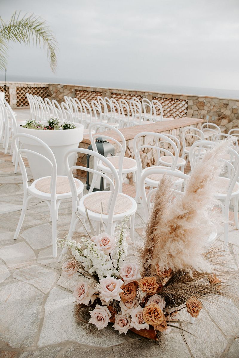 The coastal setting spoke for itself, so décor was kept simple and elegant with soft blush tones, acrylic details, and floral arrangements that transitioned seamlessly from ceremony to reception. The bride carried a bouquet of blush and toffee roses, orchids, and pampas grass, while the groom looked sharp in his custom-tailored suit.