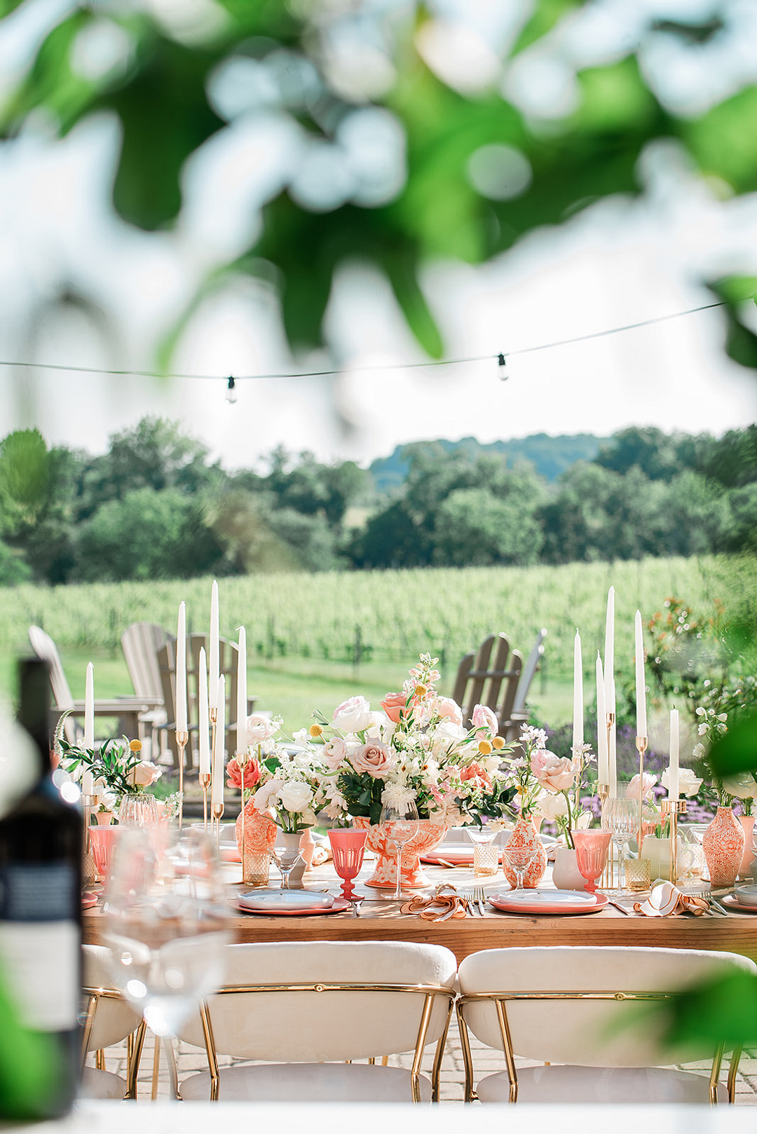 Blending old-world romance with contemporary details, the shoot featured two stunning ceremony locations, dual reception setups, and sweeping vineyard views. Every corner of the venue offered something magical, from intimate stone nooks to wide-open alfresco dining scenes.