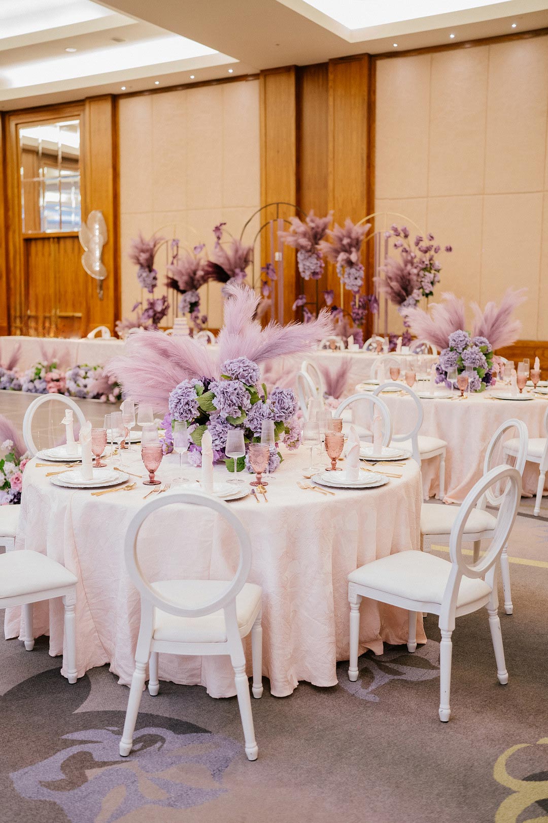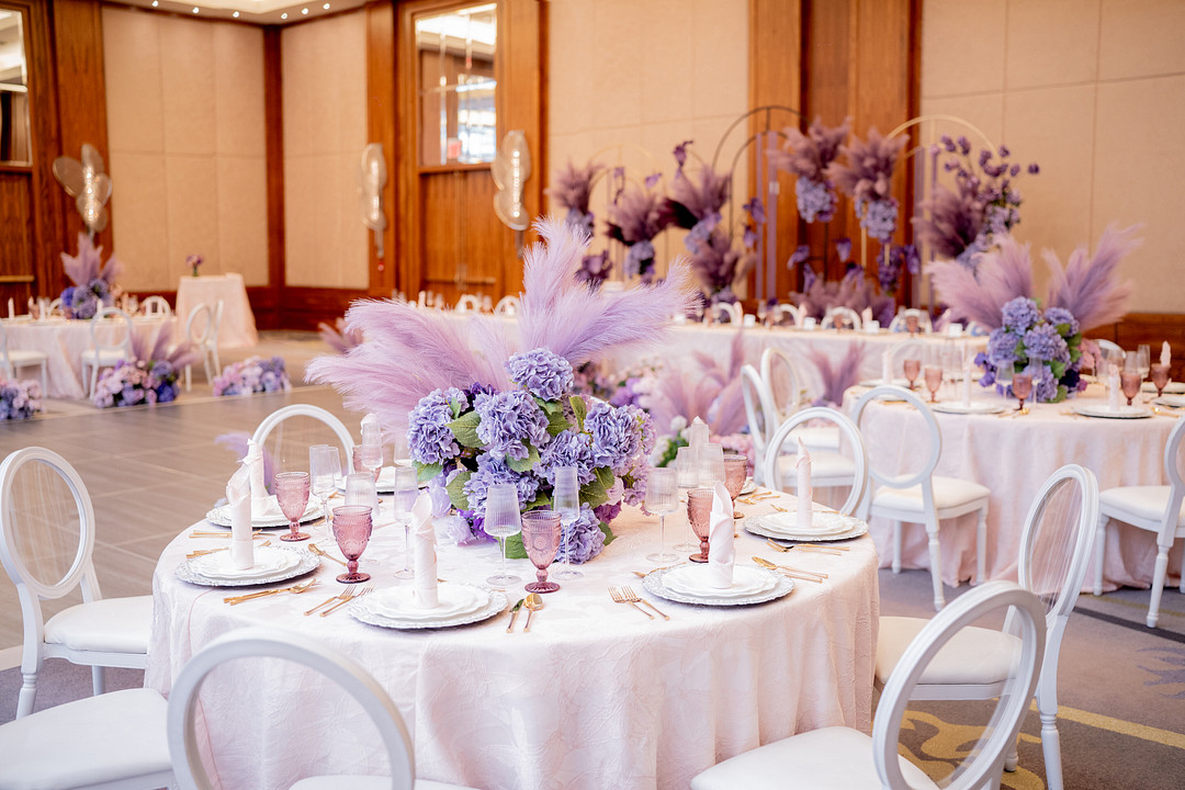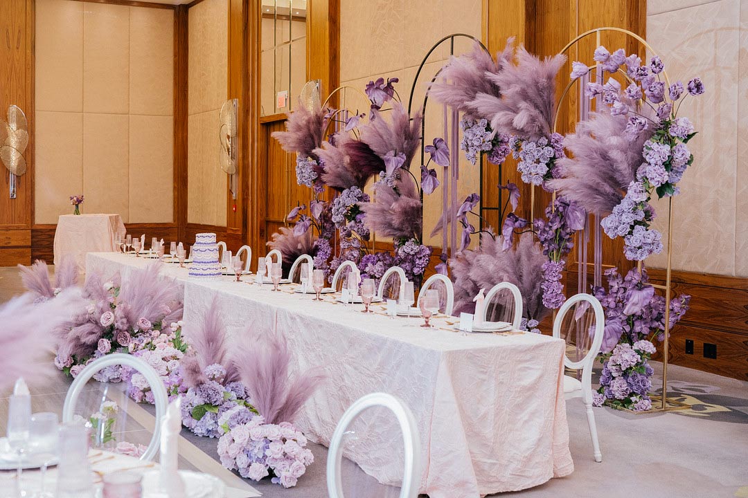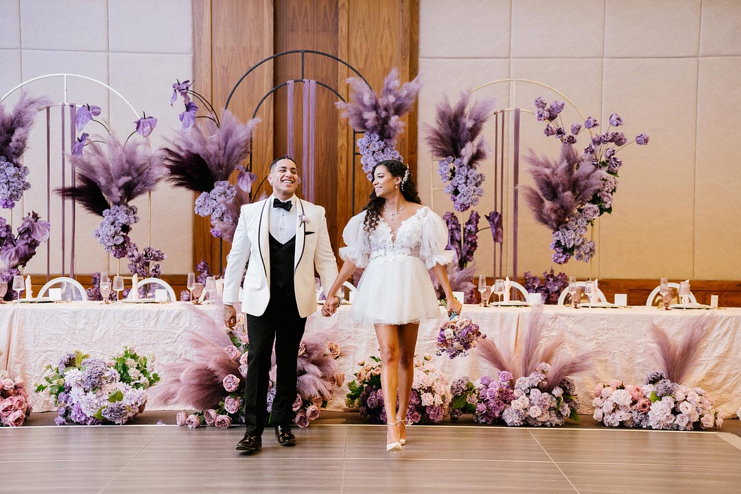 At the reception, tables were dressed in a symphony of purple, pink, and blue, creating a soulful ambiance. The menu followed suit, with each dish named after a Motown hit or artist. From savory truffle mac bites to a show-stopping filet mignon with red wine reduction, the culinary experience felt like a love letter set to music.