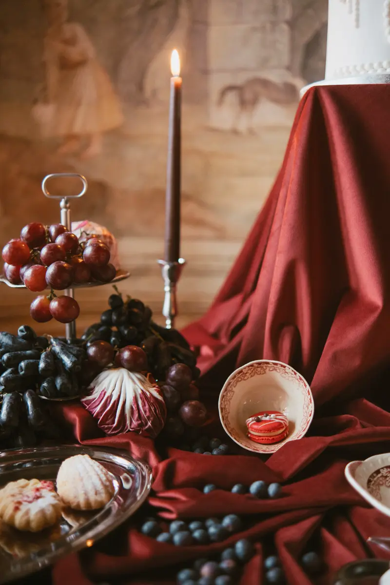 Red and white also offer endless versatility—whether you go for a glamorous, vintage, or romantic style. To complete the look, consider a dramatic red velvet cake with white buttercream details, or custom cocktails with a splash of cranberry for that perfect pop of color.