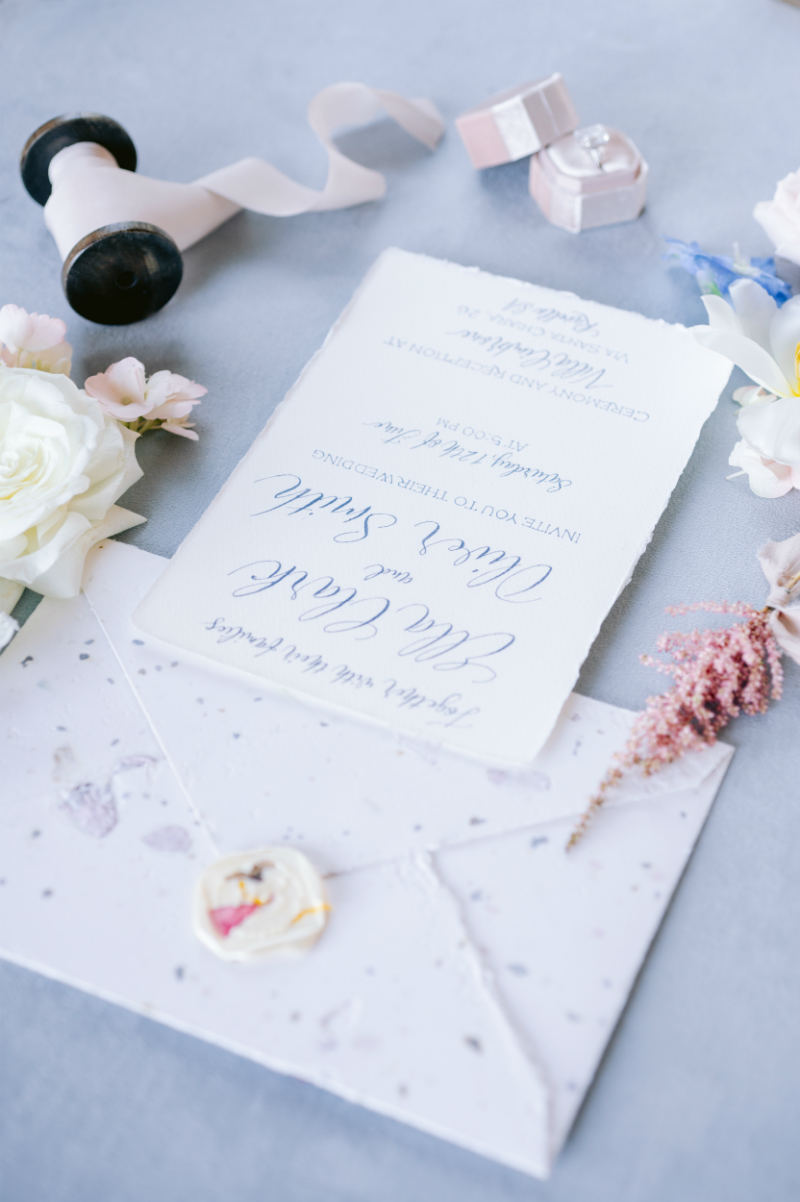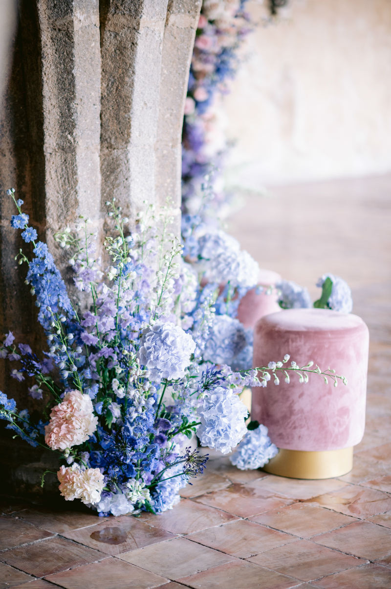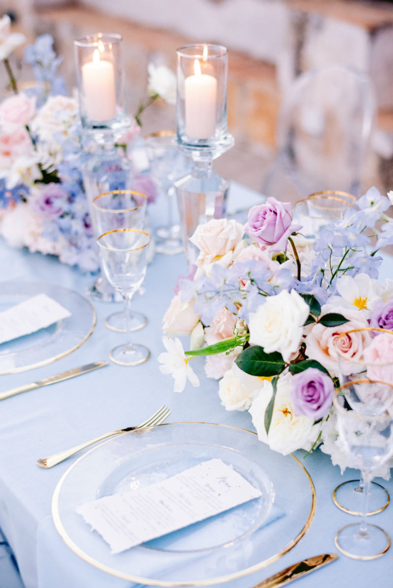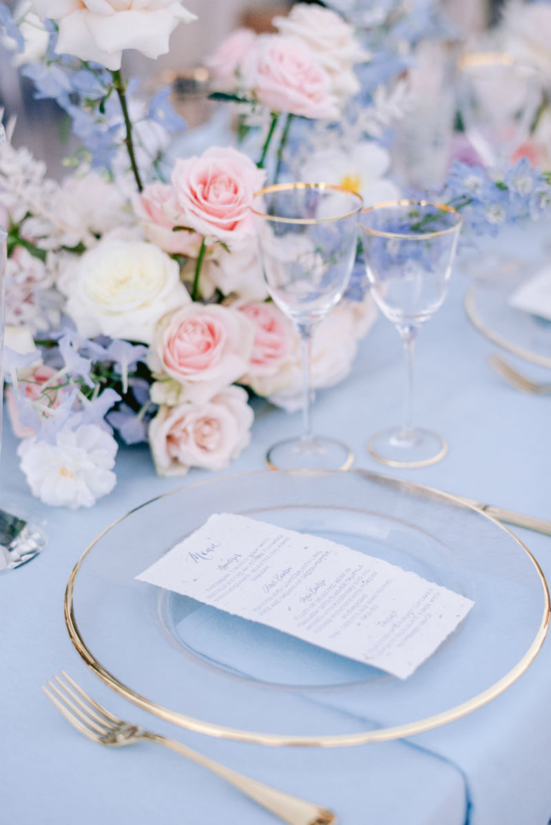 The inspiration for this wedding styled shoot was to create a real-life fairytale. Paulina of Events by Paulina always loved Sleeping Beauty, so she chose the feel and color inspiration from the Disney classic movie. The team’s blue use is inspired by the Mediterranean Sea, which is a significant part of the venue.
