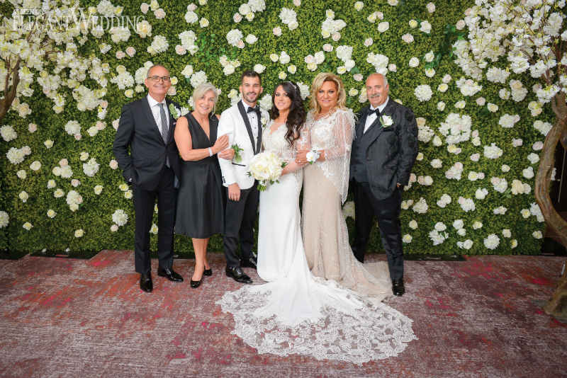 Decor, Rental, Honour Table, Silk Flowers: R5 Event Design | Fresh Flowers: Gatto Flowers | Photography: Quarum Photo & Video | Dress: Enzoani, Mona Richie Boutique | Suit: 4 Men United | Makeup: Makeup: Shannon Sansone | Hair: Elements of Hair | Accessories: Woodbridge Bridal Shoe Shop | Venue: Hotel X, Toronto | Catering: byPeterandPauls | Entertainment: Veriation Music, Shimonov Brothers, J Stixx | Live Entertainment & Singer Laura Cavacece | Wedding Planner: Fab Fête Planning Boutique | Rentals: As Special Events Party & Tent Rentals | Dance Floor: Dance Floor Graphics | Cake: Cake Creations by Michelle | Invitations & Stationery: Pearl Invitations | Video: Spotlight Films
