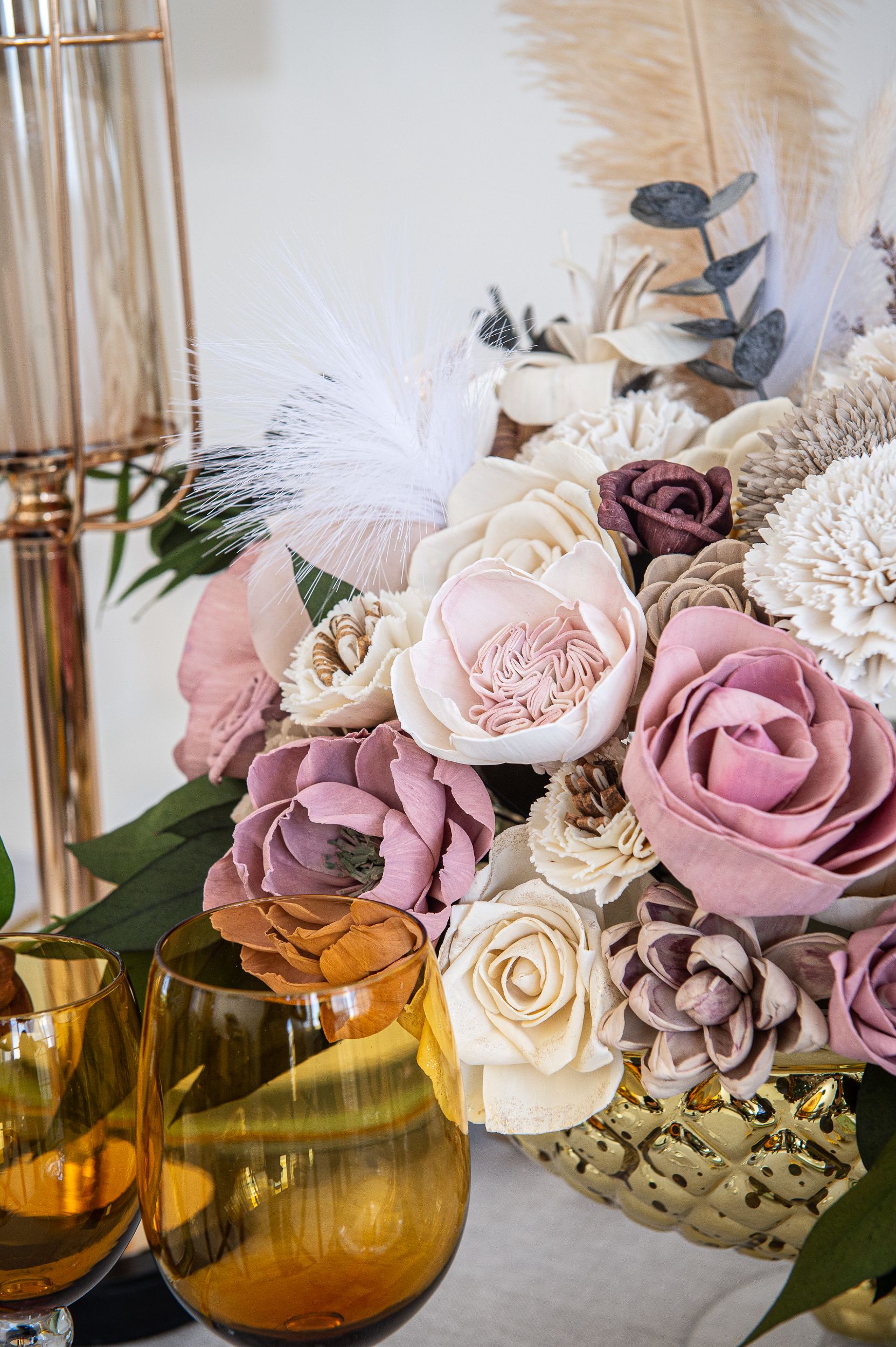Natural and organic elements play a significant role in boho wedding decor. Consider using items like dreamcatchers, feathers, vintage rugs, lanterns, and wildflowers. Macramé details and fabric draping can also add a touch of bohemian elegance.