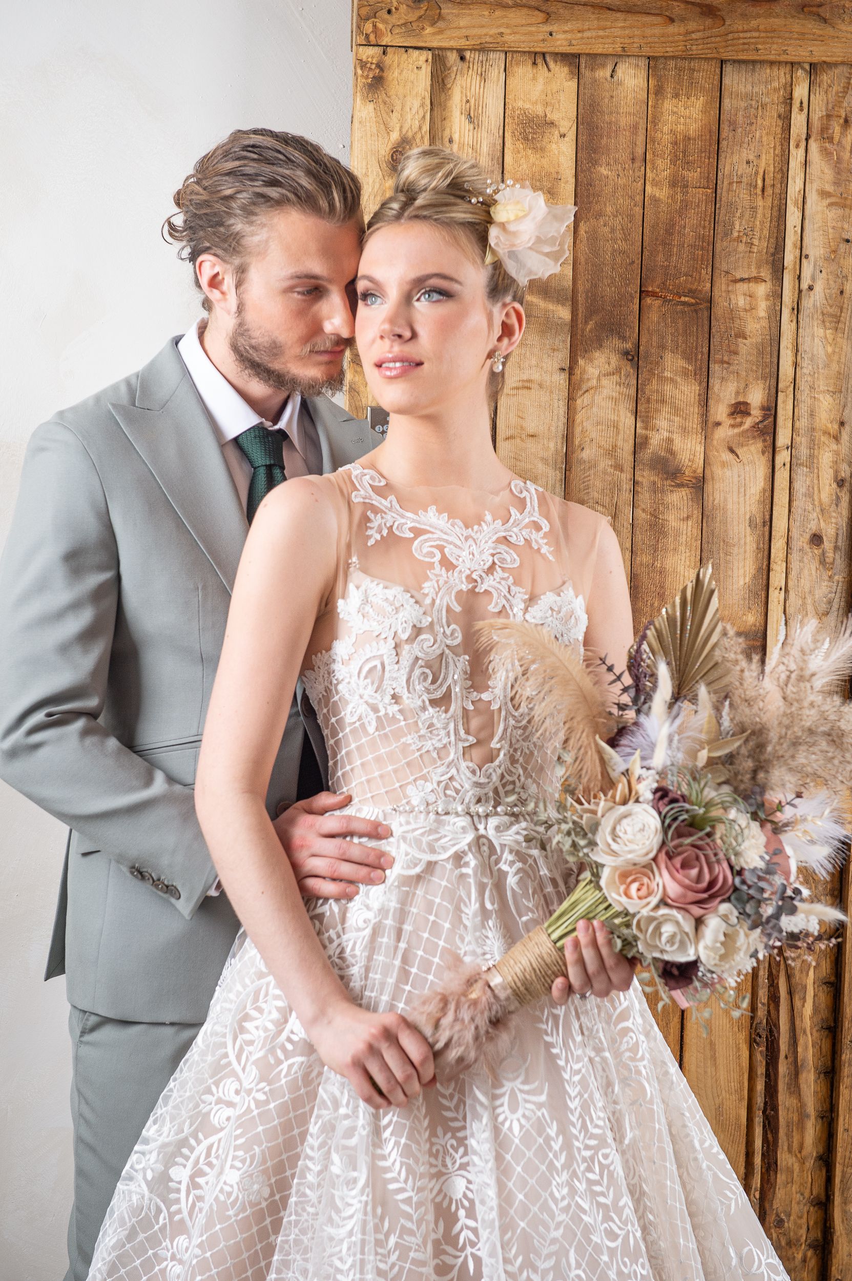 The bride and groom typically opt for bohemian-style attire. For the bride, this may include flowy and unstructured wedding dresses, flower crowns, or even barefoot sandals. Grooms might go for casual, yet stylish, attire like linen suits or vests.