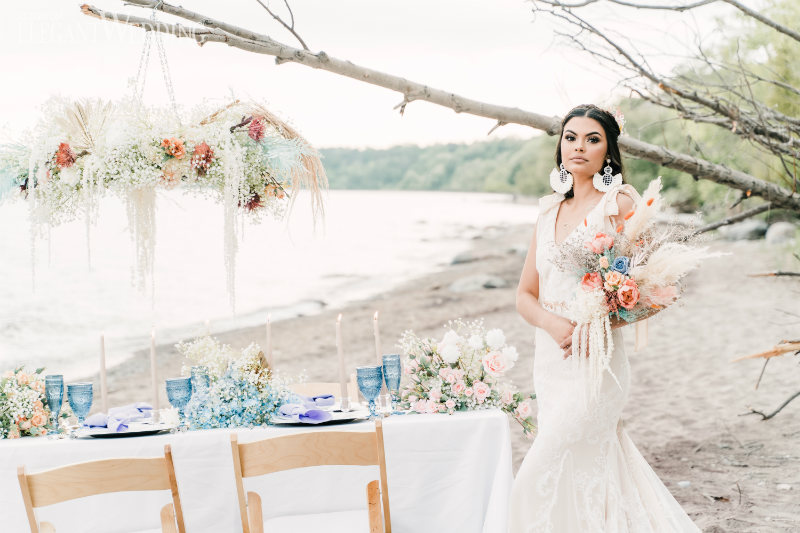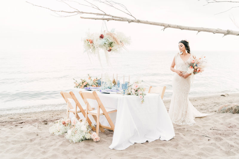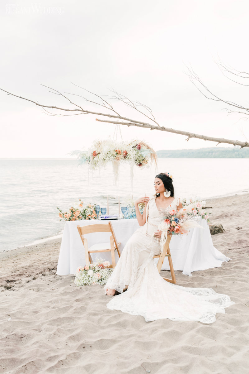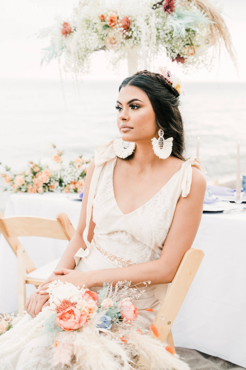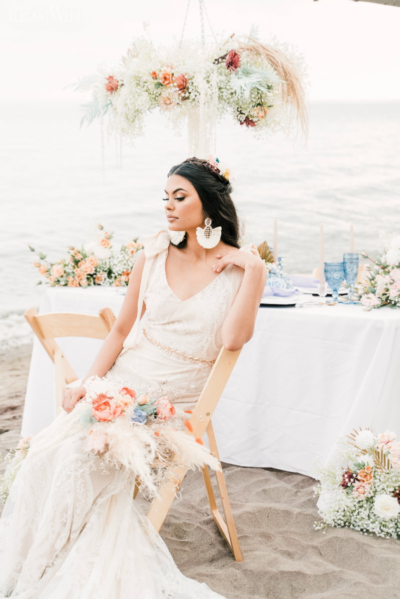 Planning a wedding takes hard work no matter the venue. And while planning a beach wedding isn’t that much harder it does involve some extra planning. This beautiful styled shoot sets the tone for a boho-inspired theme. Whether you’re planning to spend a week with family at an all-inclusive resort or planning your wedding at a local beach the attention to detail will ensure your oceanside nuptials go off without a hitch.