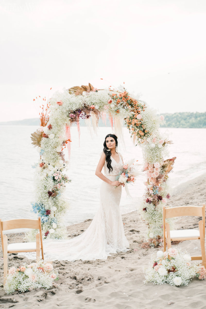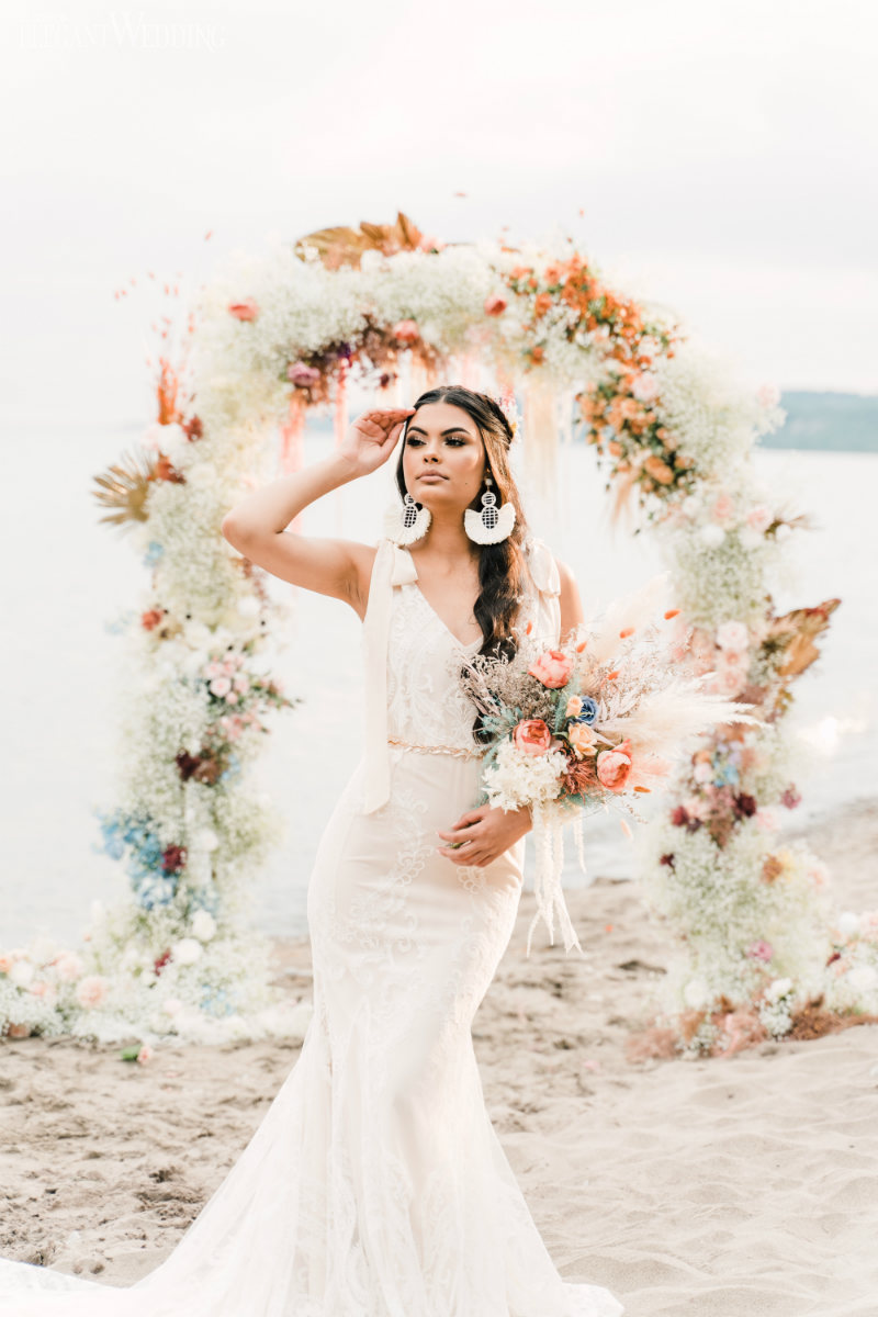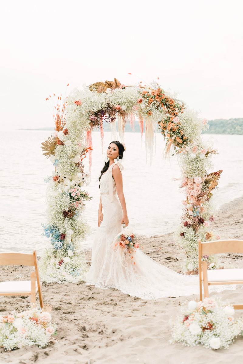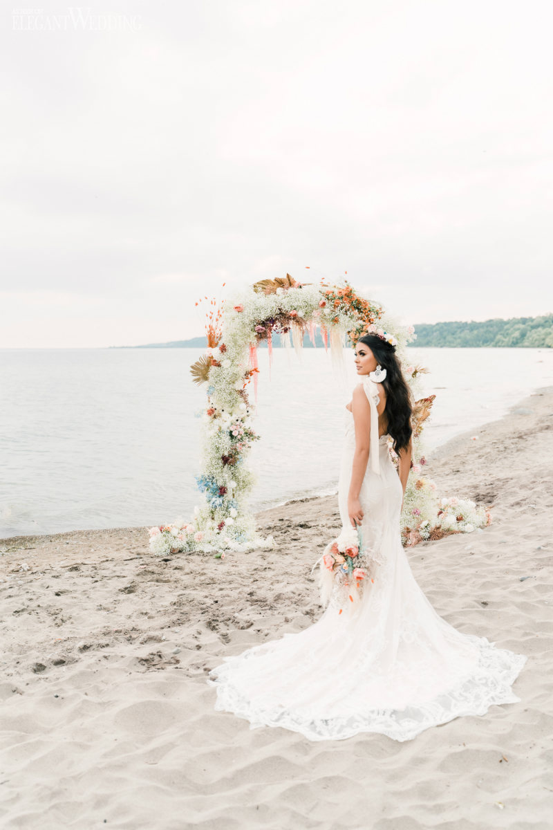 Planning a wedding takes hard work no matter the venue. And while planning a beach wedding isn’t that much harder it does involve some extra planning. This beautiful styled shoot sets the tone for a boho-inspired theme. Whether you’re planning to spend a week with family at an all-inclusive resort or planning your wedding at a local beach the attention to detail will ensure your oceanside nuptials go off without a hitch.