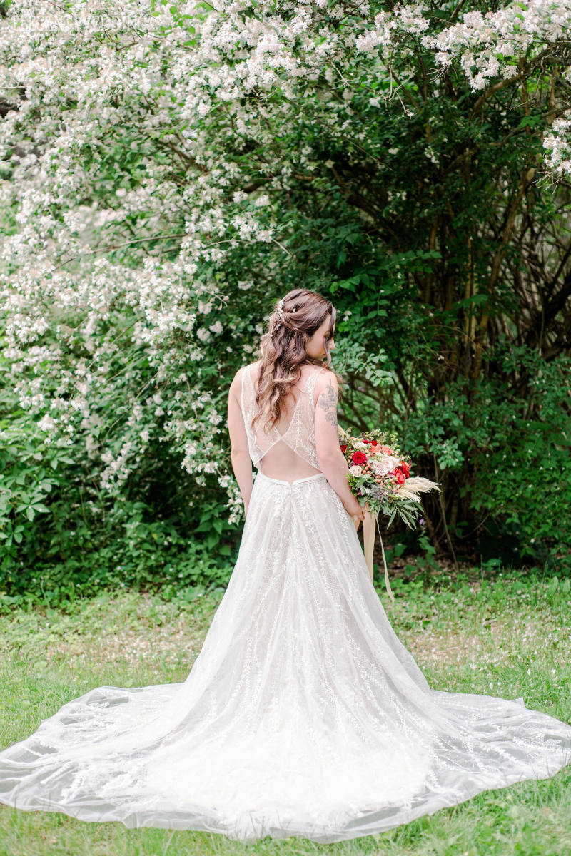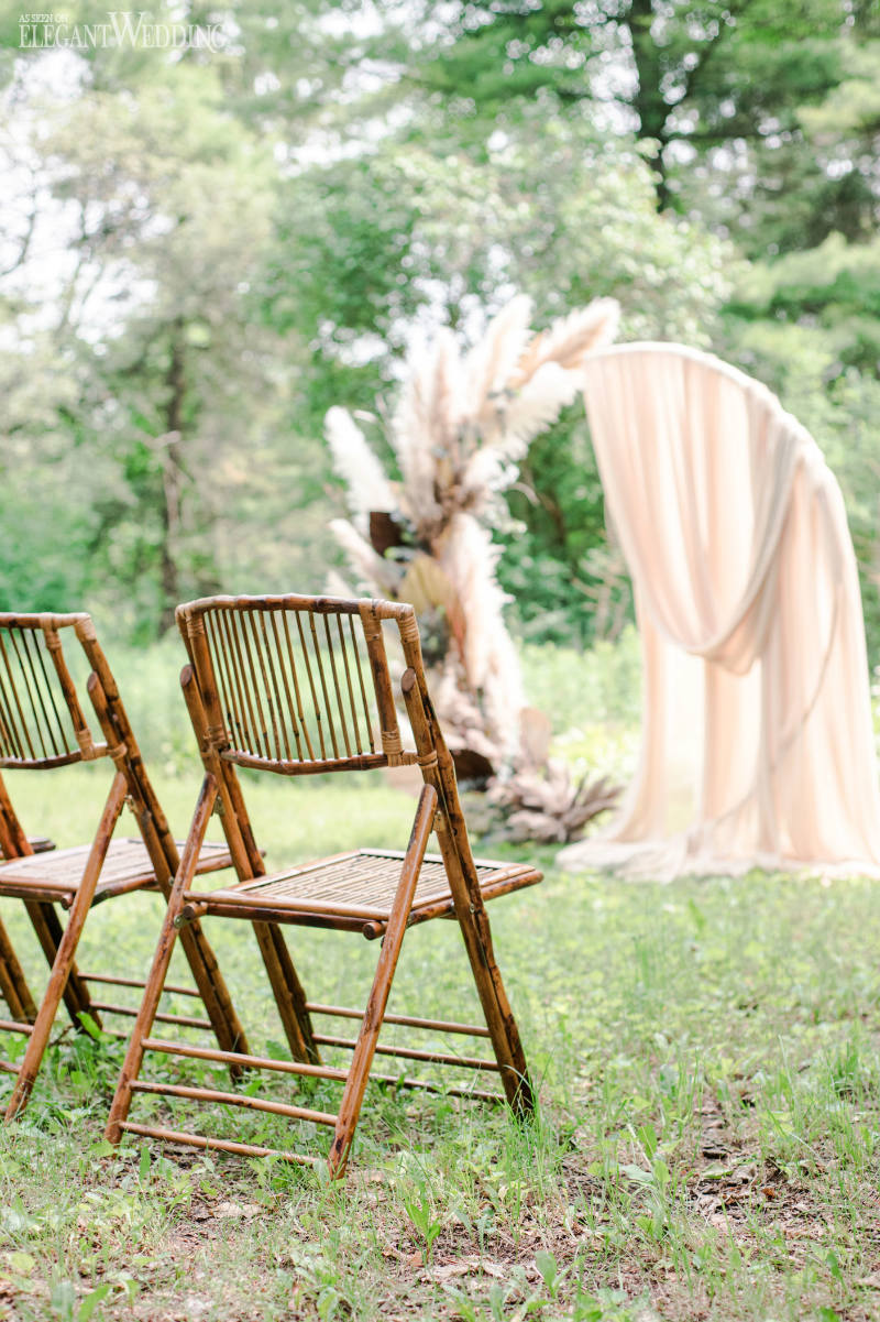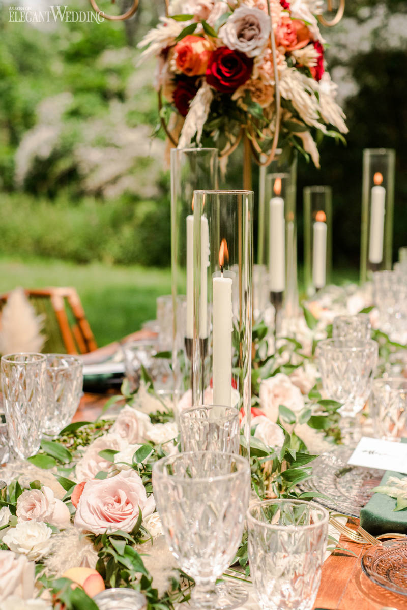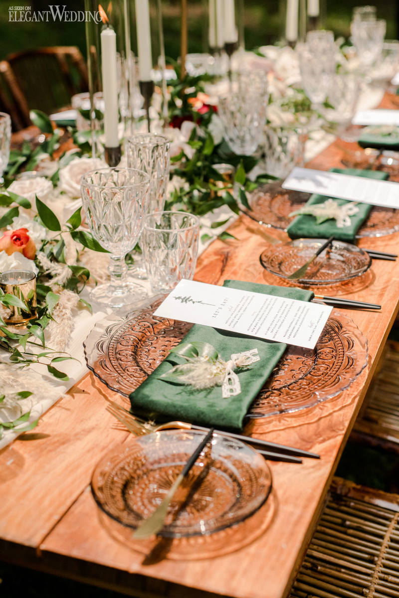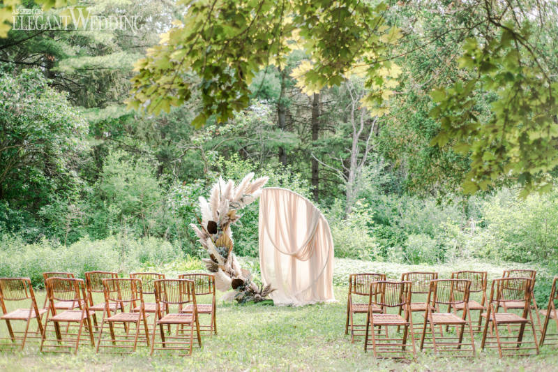 The team of vendors created this shoot to help promote small outdoor weddings. With the pandemic continuing, many couples have moved the route of still having their dream weddings with just close friends and family. Color inspired by 2021 trends – the terracotta orange and deep greens. The vintage bohemian style was to show that you can have an elegant wedding outdoors without always going the “rustic” route.