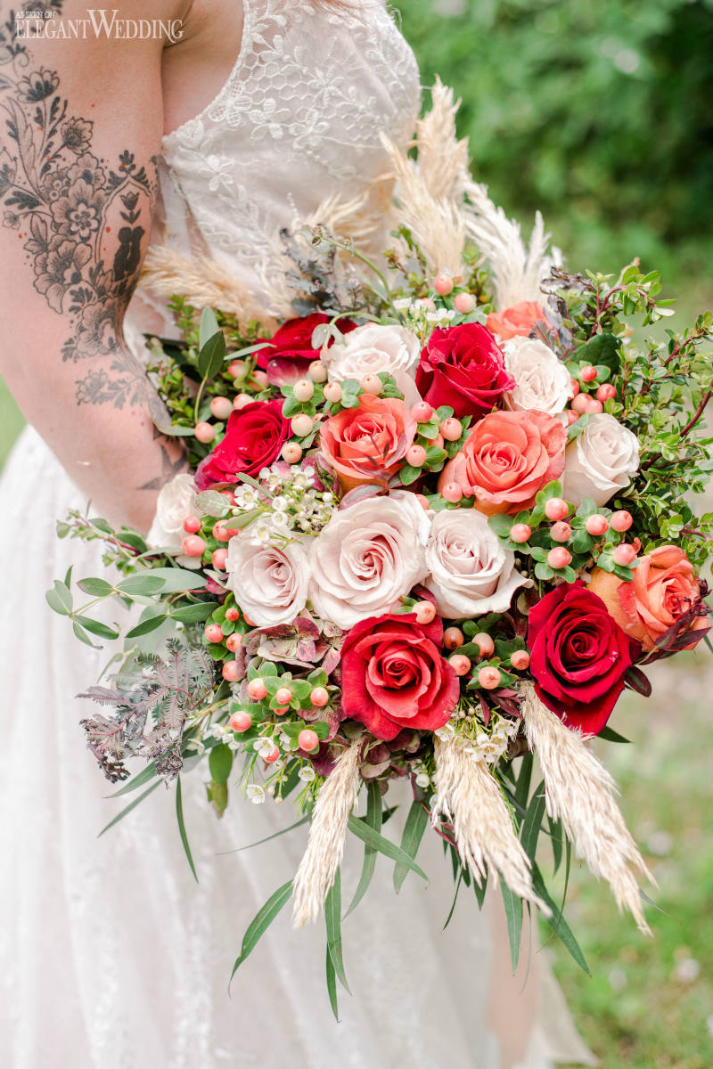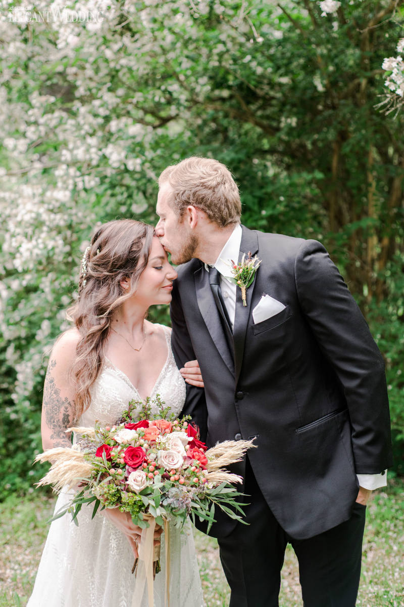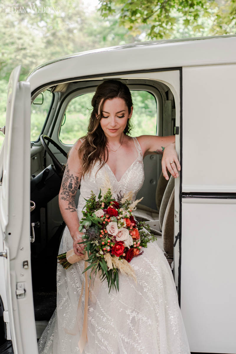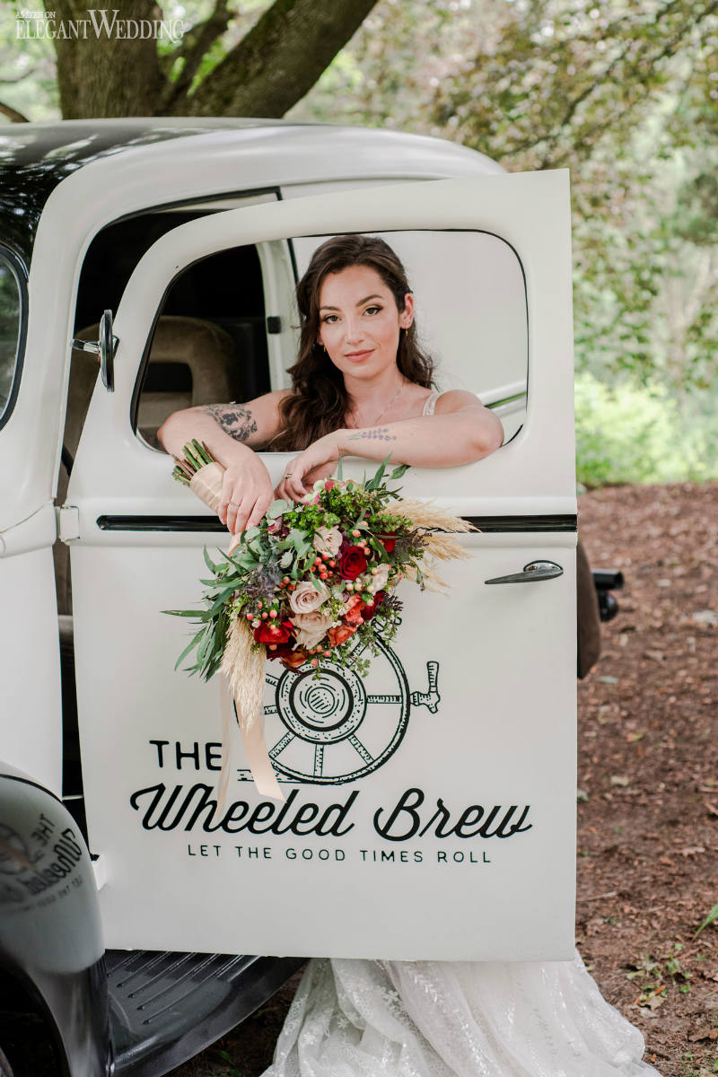 The team of vendors created this shoot to help promote small outdoor weddings. With the pandemic continuing, many couples have moved the route of still having their dream weddings with just close friends and family. Color inspired by 2021 trends – the terracotta orange and deep greens. The vintage bohemian style was to show that you can have an elegant wedding outdoors without always going the “rustic” route.