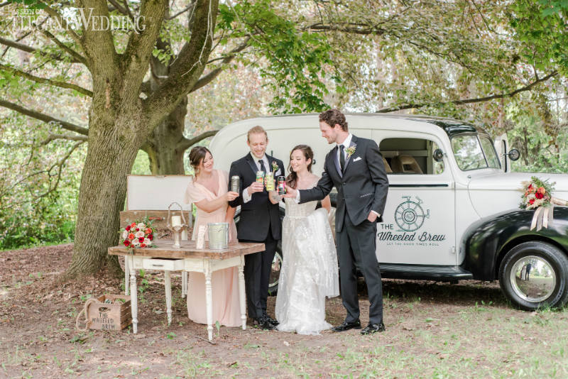 Venue: Crieff Hills Retreat Centre | Photography: Melissa Photography and Design | Event Planner: New Berlin Weddings & Events | Flowers: HiWay Flowers | Decor & Linens: Latkat Linens | Invitations: Red Bicycle Paper Co. | Cake: Cake Lovers Unite | Hair & Makeup: Amy Bo-Bamy Beauty | Bridal Gown: Balletts Bridal | Jewelry: Laurel Rose Studio | Groom’s Attire: Collins Clothiers | Mobile Bar: The Wheeled Brew
