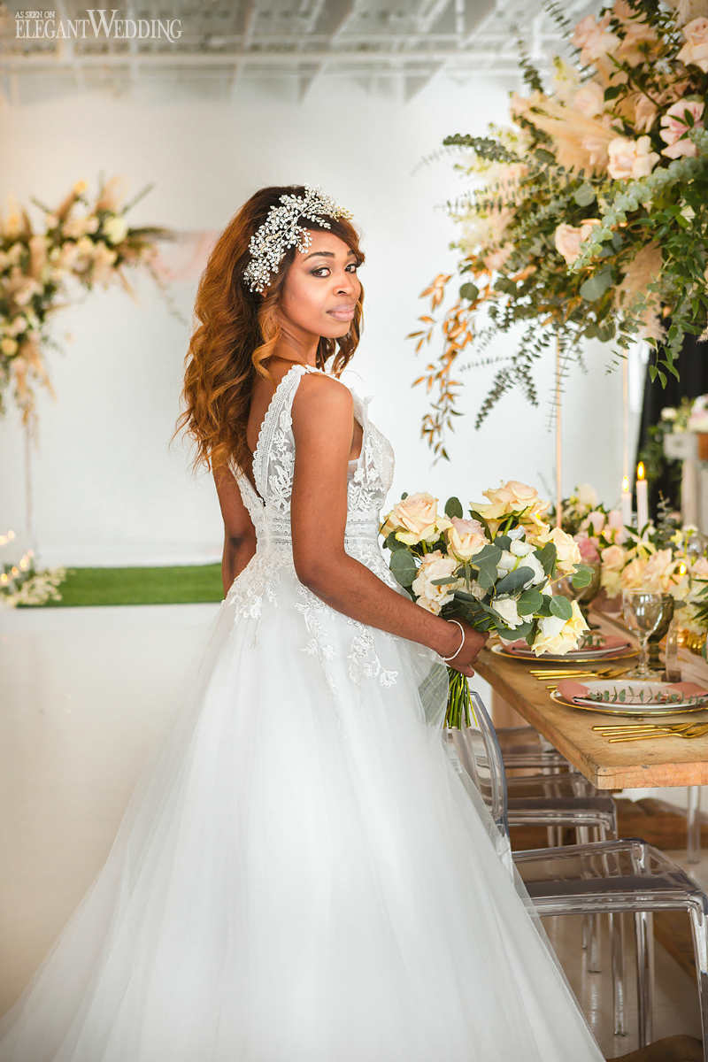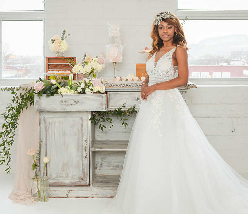 Photography: Lisa + Eddy Photography | Planning: Reine Prestige Events | Bridal dress and accessories: Château de la mariee Nadia | Flowers: Aura Design | Decor: Diva Location | Linens: Decor and More | Location: Studio leloi | Rentals: Joe’s Prop House | Invitations: Charlotte & Cie | Cake: Sweet Savour by Felicia | Makeup: Gabbie McGuire Beauty | Hair: Amelie Fatou | Groom’s Attire: Baggi Montreal | Video: Authentik Weddings | Model: Nada Piry