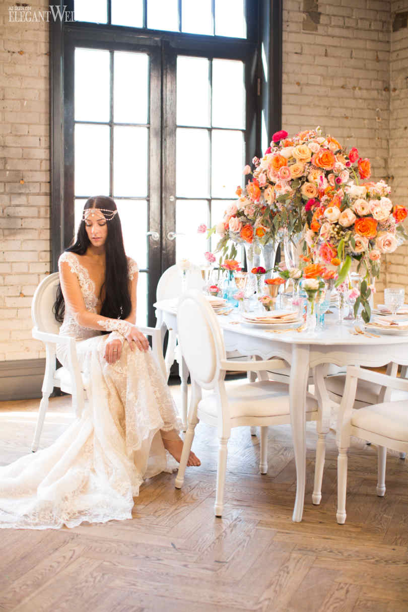 Producer & Coordinator: Elite Events Consultants | Gown: Ines Di Santo | Flowers: Lemon Truffle Designs | Photography: Amy Cheshire Photography | Hair: Kristen Foote Make-up + Hair | Makeup: Makeup by Aniqua Malik | Linens: Have A Seat Inc. | Stationery: Paper Damsels | Chair Rentals: Detailz Couture Event Rentals | Wedding Cake & Dessert Table: Marshall Cake Artistry | Jewellery: Tara Fava Jewellery | Stemware & Tableware: Plate Occasions | Location: Story’s Building
