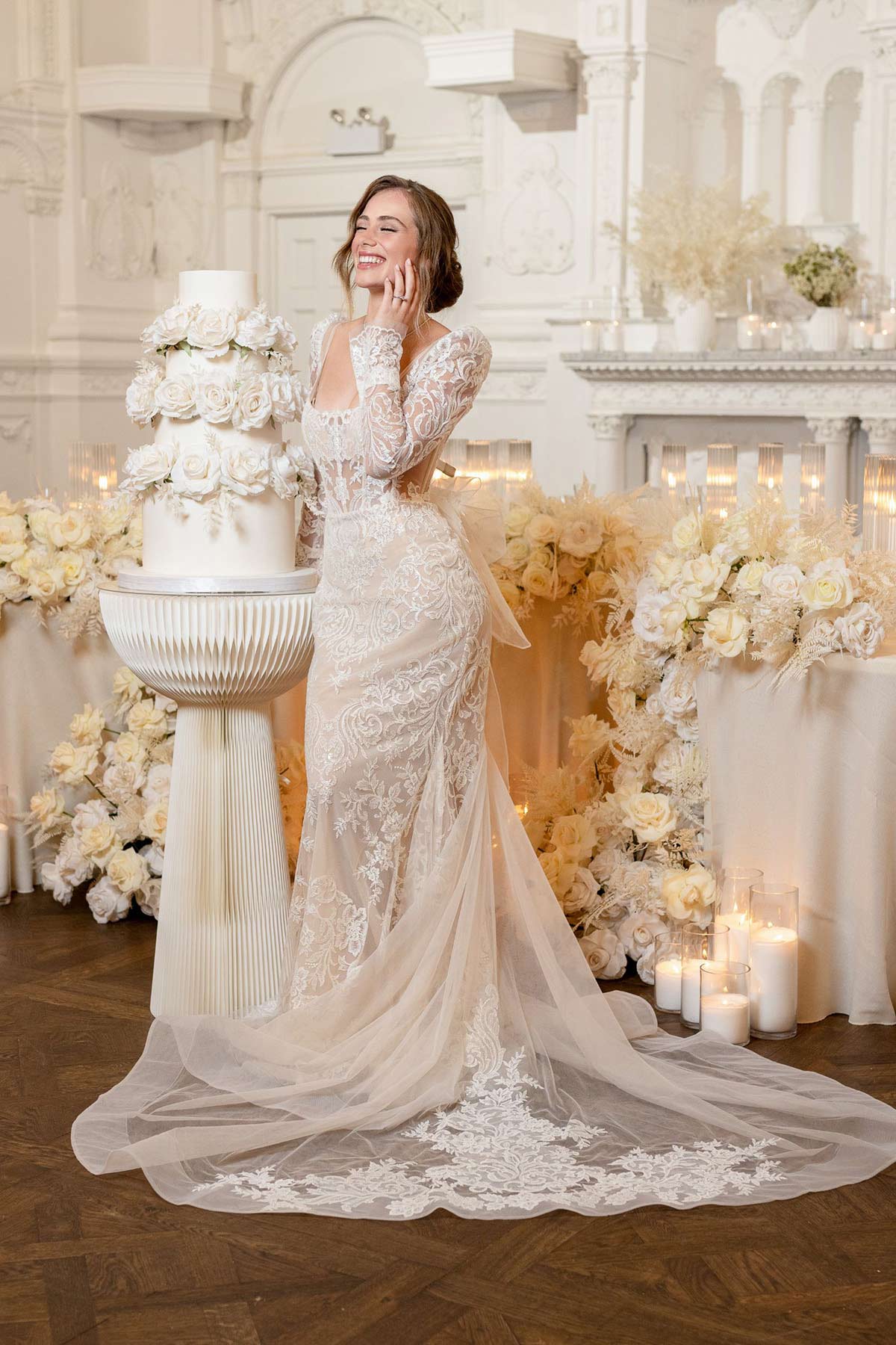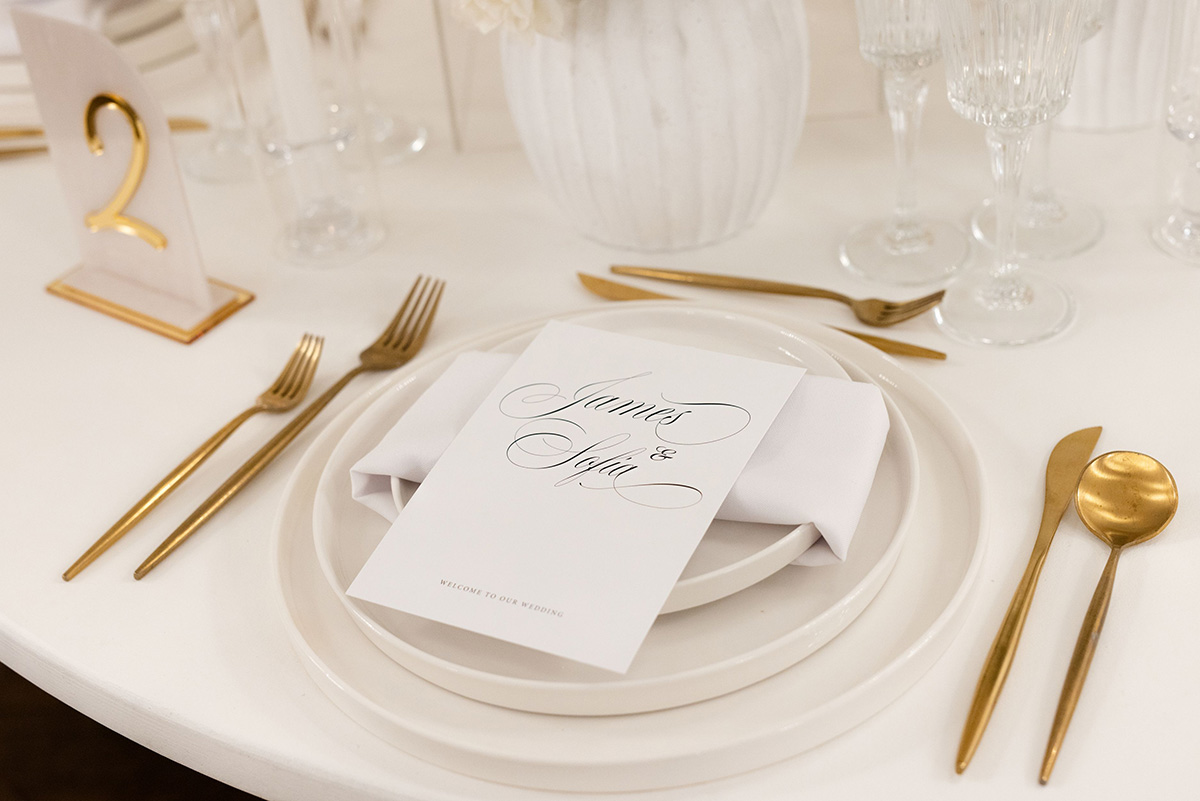 Every detail, from the grand white paneling to the delicate floral arrangements, contributes to an ambiance of understated luxury. The mix of classic and contemporary elements ensures a wedding that feels both timeless and fresh. The venue’s natural beauty does much of the work, requiring only subtle enhancements to elevate its romantic charm.