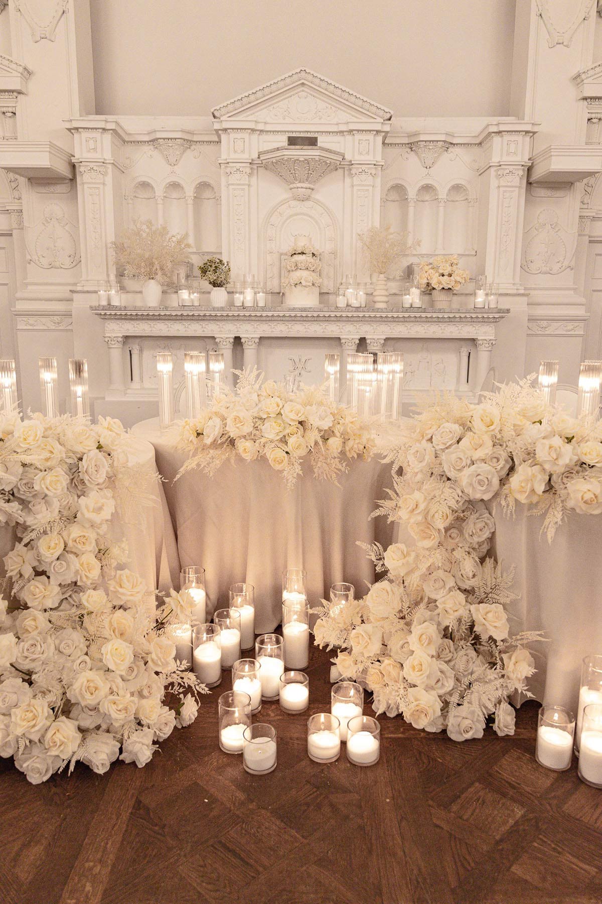 Picture a historic venue with intricate architectural details, soaring ceilings, and chandeliers that glisten under the soft glow of candlelight. This refined setting provides the ultimate backdrop for a white wedding, allowing the neutral hues to shine with unparalleled grace.