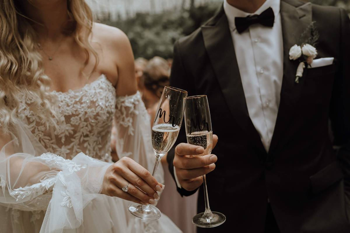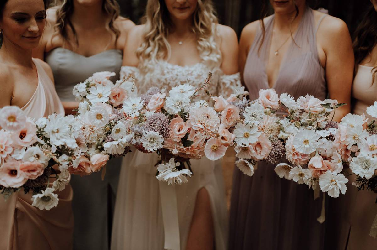 Their vision was to create a whimsical forest fairytale adorned with soft pastels and whites to evoke a truly romantic atmosphere. Picture unstructured wildflower bouquets in delicate pastels set against a formal backdrop. The ceremony unfolded in an enchanting forest, with a gentle creek beside the altar, reminiscent of the old English countryside. A cake embellished with dried flowers and the melodies of a live band further enhanced the dreamlike ambiance. Each table was named after legendary love stories, such as Romeo and Juliet, Cleopatra and Mark Antony, and Rose and Jack. Menus were elegantly tied with bows and ribbons, and the entire setting was bathed in the soft glow of countless romantic candles.