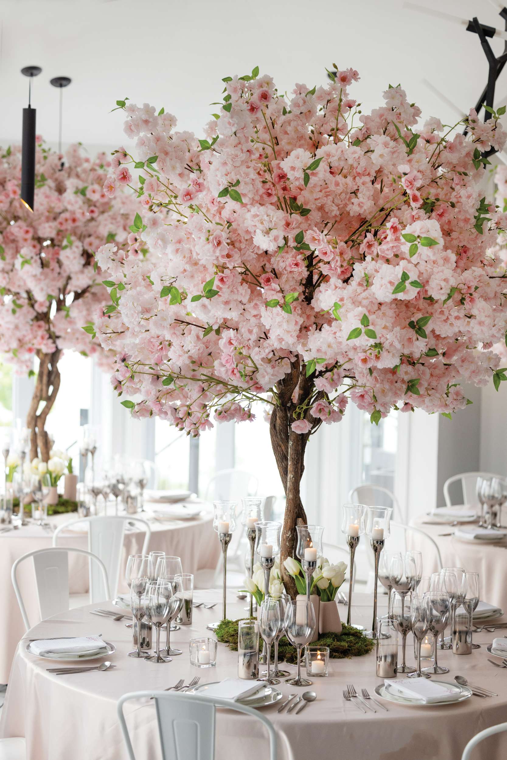 A pink wedding theme transforms a wedding into a visually stunning and eternally romantic celebration. Use arrangements of pink and white flowers as centrepieces on tables. Consider incorporating candles or fairy lights for added enchantment.