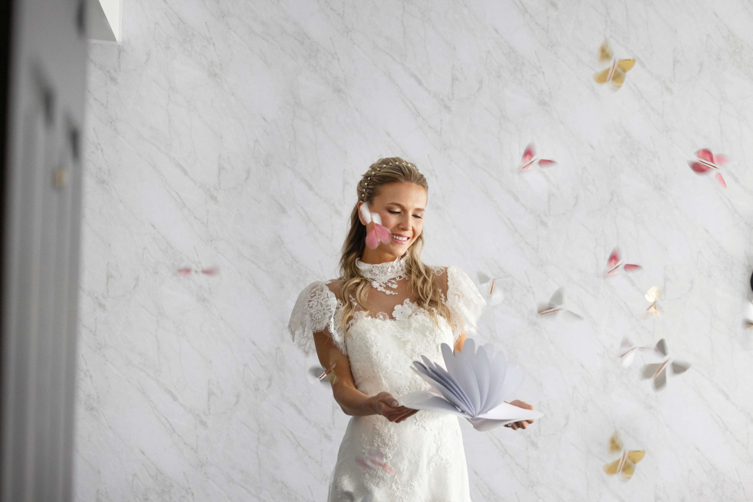 Photography: Foto Studio Franca Sorrenti | Venue: Auberge du Lac des Sables | Flowers: Lelili Fleurs | Hair & Makeup: Studio Caroline Théoret | Gowns & Accessories: White Montreal | Rentals: Celebrations Group | Butterflies: Papillons Magiques
