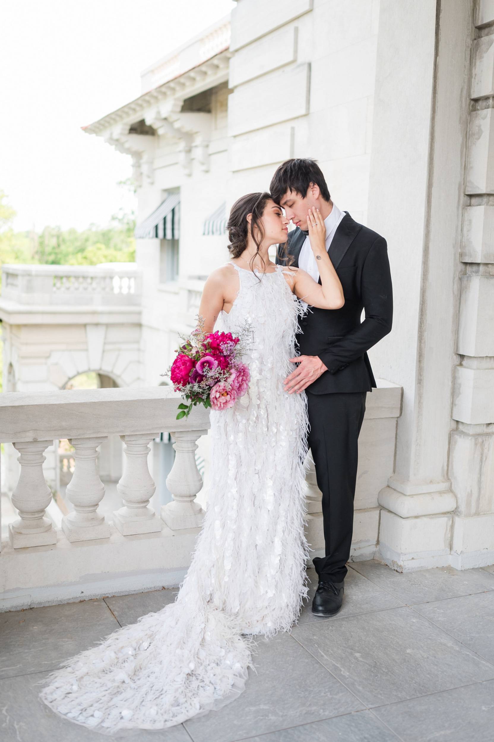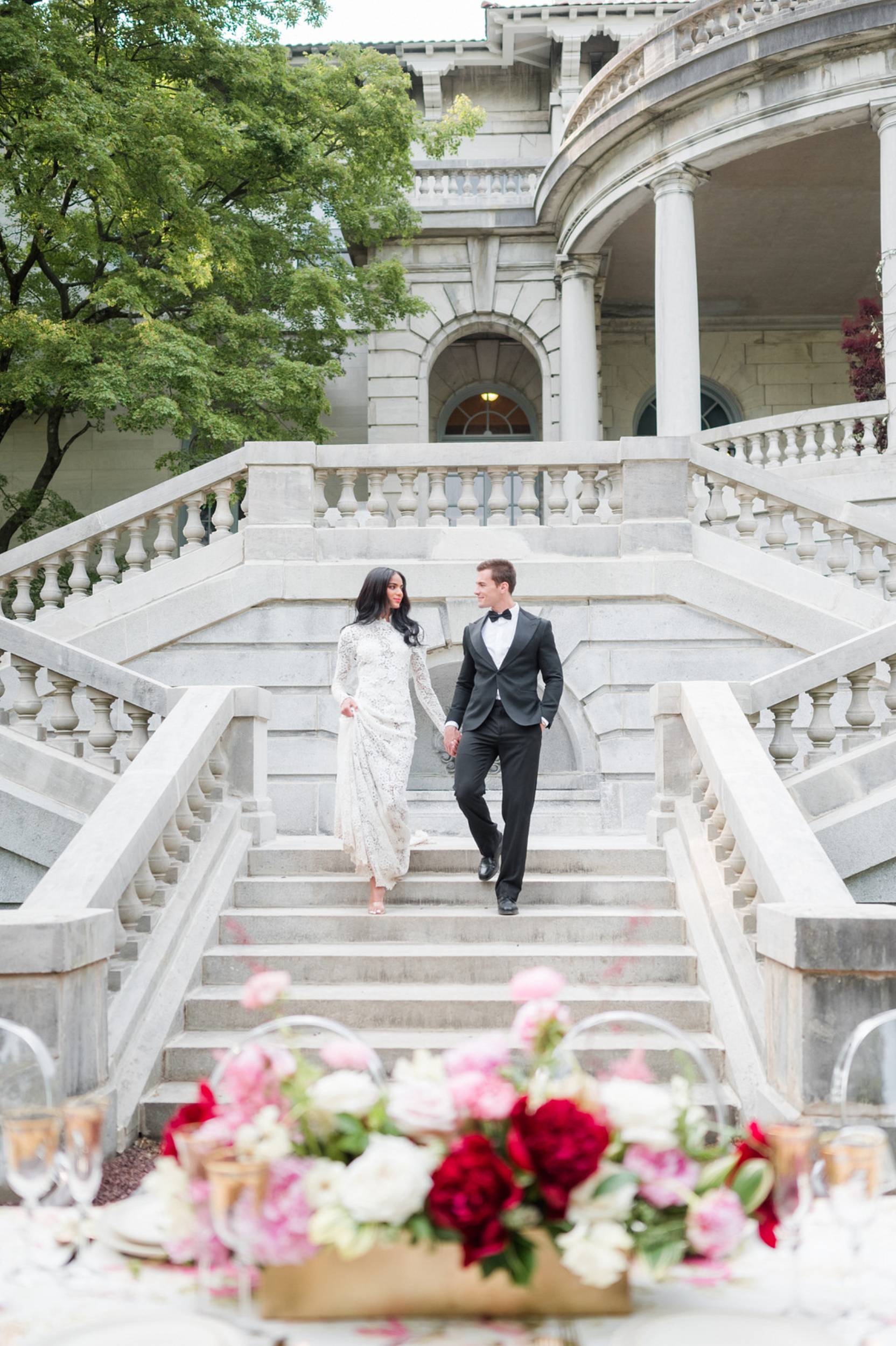 A perfect spring day, luscious florals, intricate stationery, couture dresses and jaw-dropping models made this styled wedding photoshoot a dream. Future couples hosting events at this venue throughout the property can bring their vision to life with neutral marble and white backdrops or utilize the areas with more historic art details.”