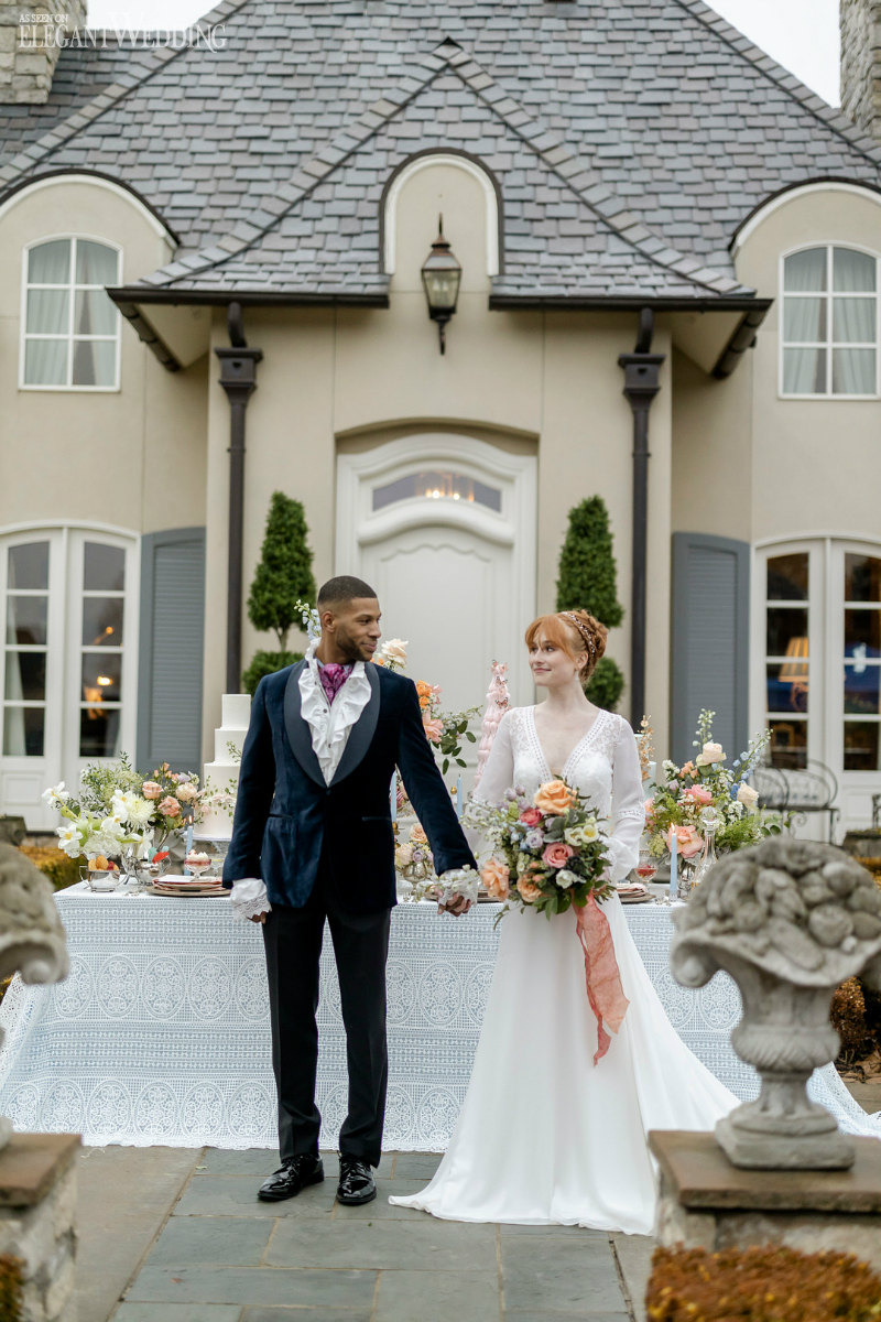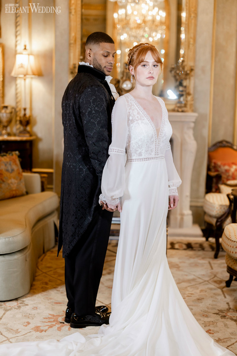 Inspired by the opulent imagery of Bridgerton on Netflix. This incredible Bridgerton wedding shows that even intimate weddings can be elegant and luxe.