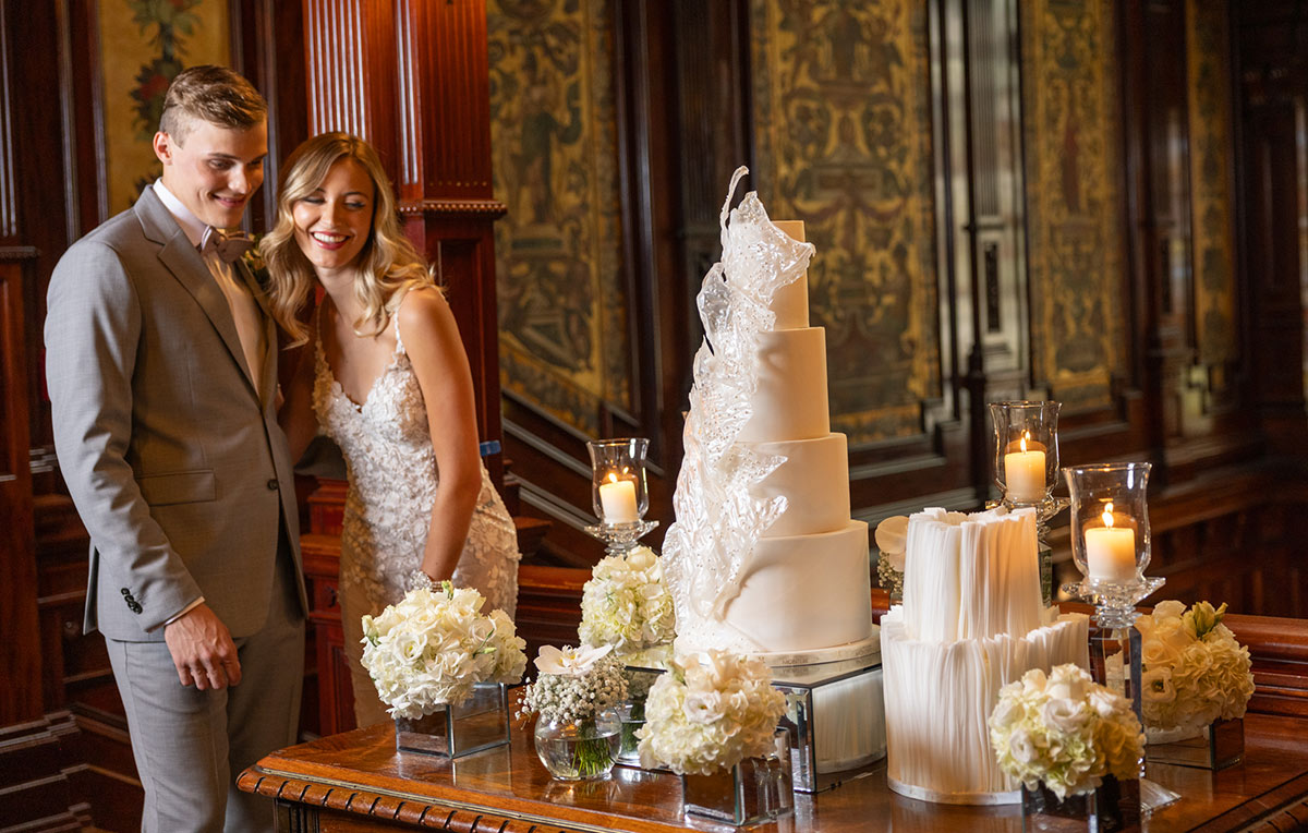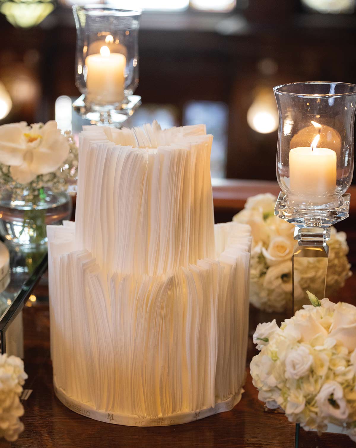 The cake, elegantly simple, featured delicate floral accents that perfectly tied together the day’s theme.