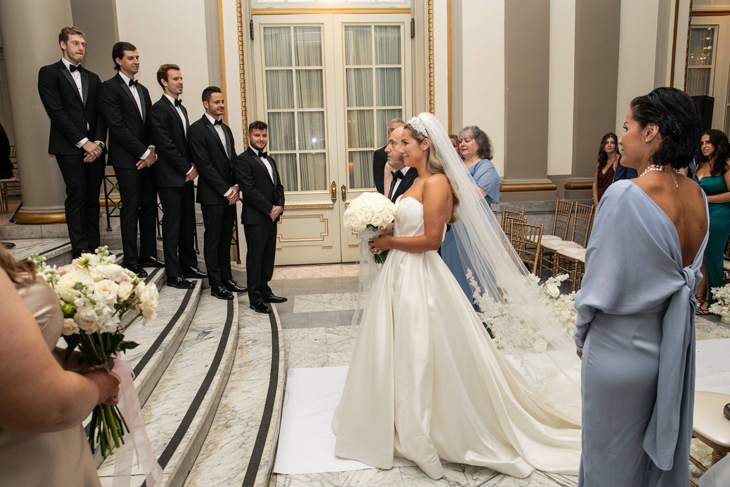 With its rich history and romantic charm, Montreal provided the perfect backdrop for a stunning white and gold wedding that left guests spellbound. The event at the elegant Le Windsor Ballroom in Montreal was a testament to sophistication and timeless beauty, meticulously crafted by some of the city’s finest vendors.