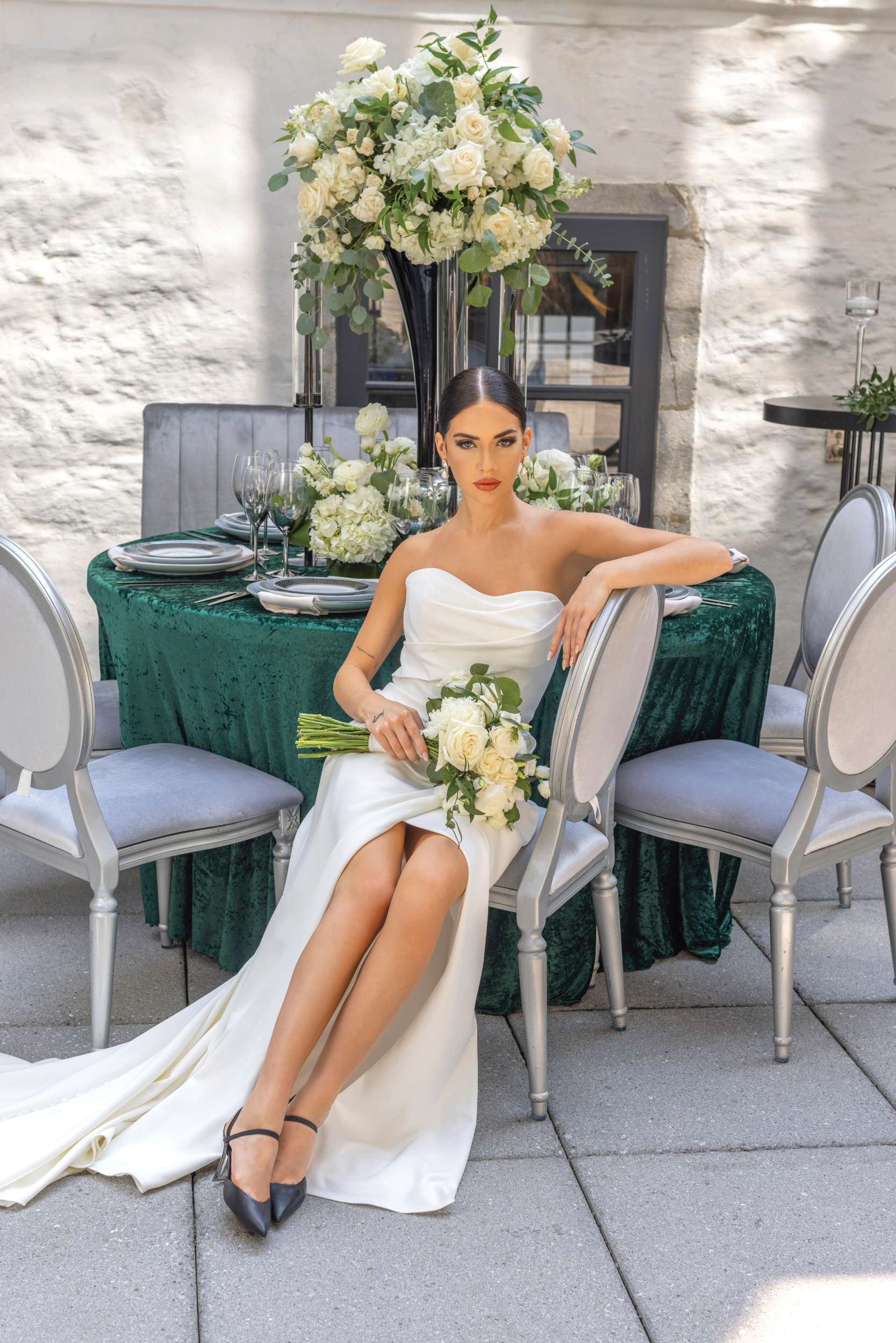 This stunning theme evokes a sense of timeless elegance and natural splendour, creating a breathtaking aesthetic that captures the essence of romance and luxury. The lush greenery symbolizes growth, harmony, and renewal, creating a backdrop that signifies the beginning of a beautiful journey together. The combination becomes a visual masterpiece when intertwined with the regal allure of gold accents. With its luxurious and warm tones, gold adds a touch of sophistication and grandeur, turning every element into a radiant spectacle. These amazing vendors created a stunning feature.