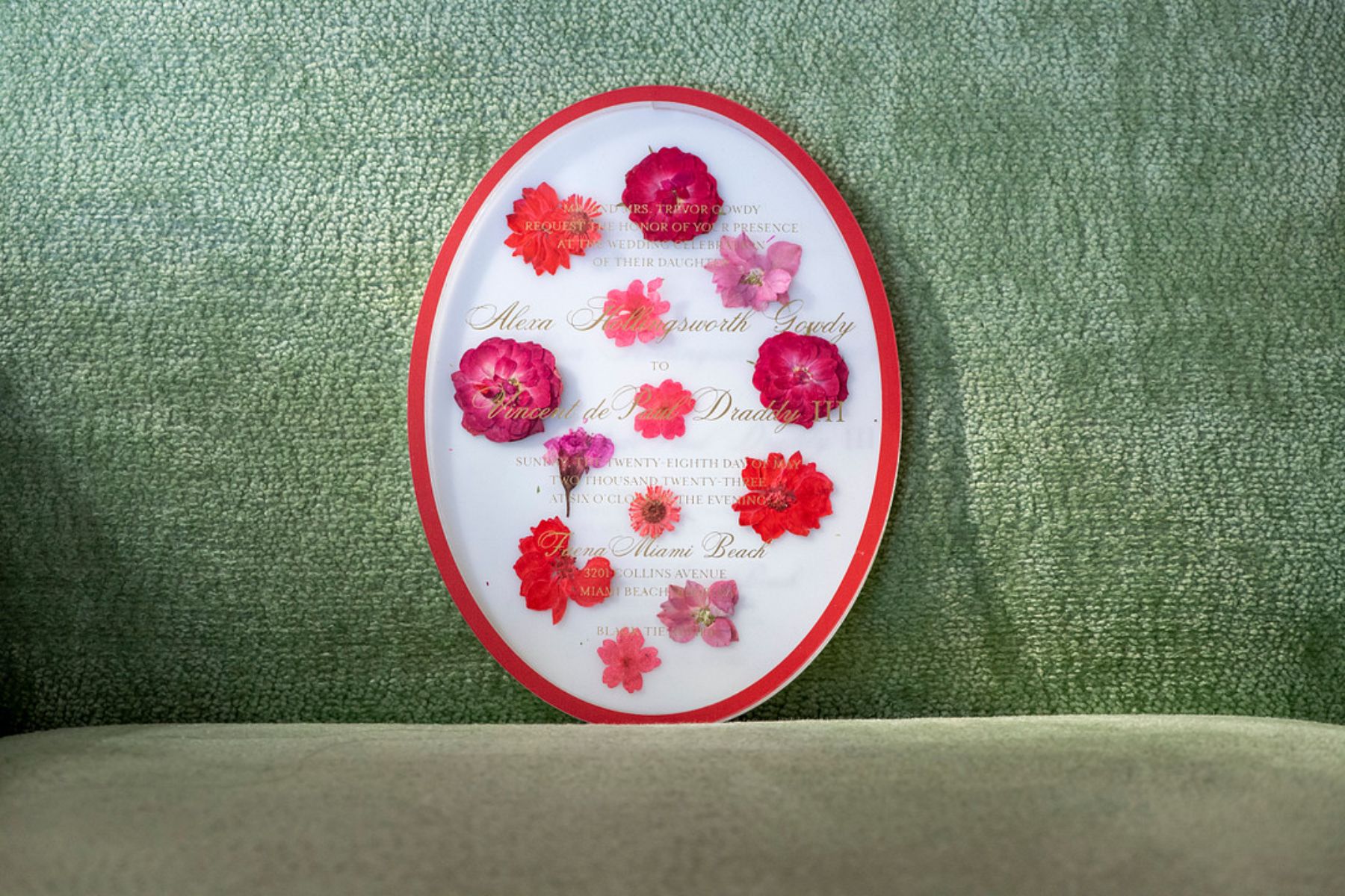 The mood was set with a joyful and bold color palette that matched the couple’s lively personalities. Everything from the décor to the details radiated happiness. Instead of traditional place cards, guests received tickets to the show, setting the tone for the night ahead.