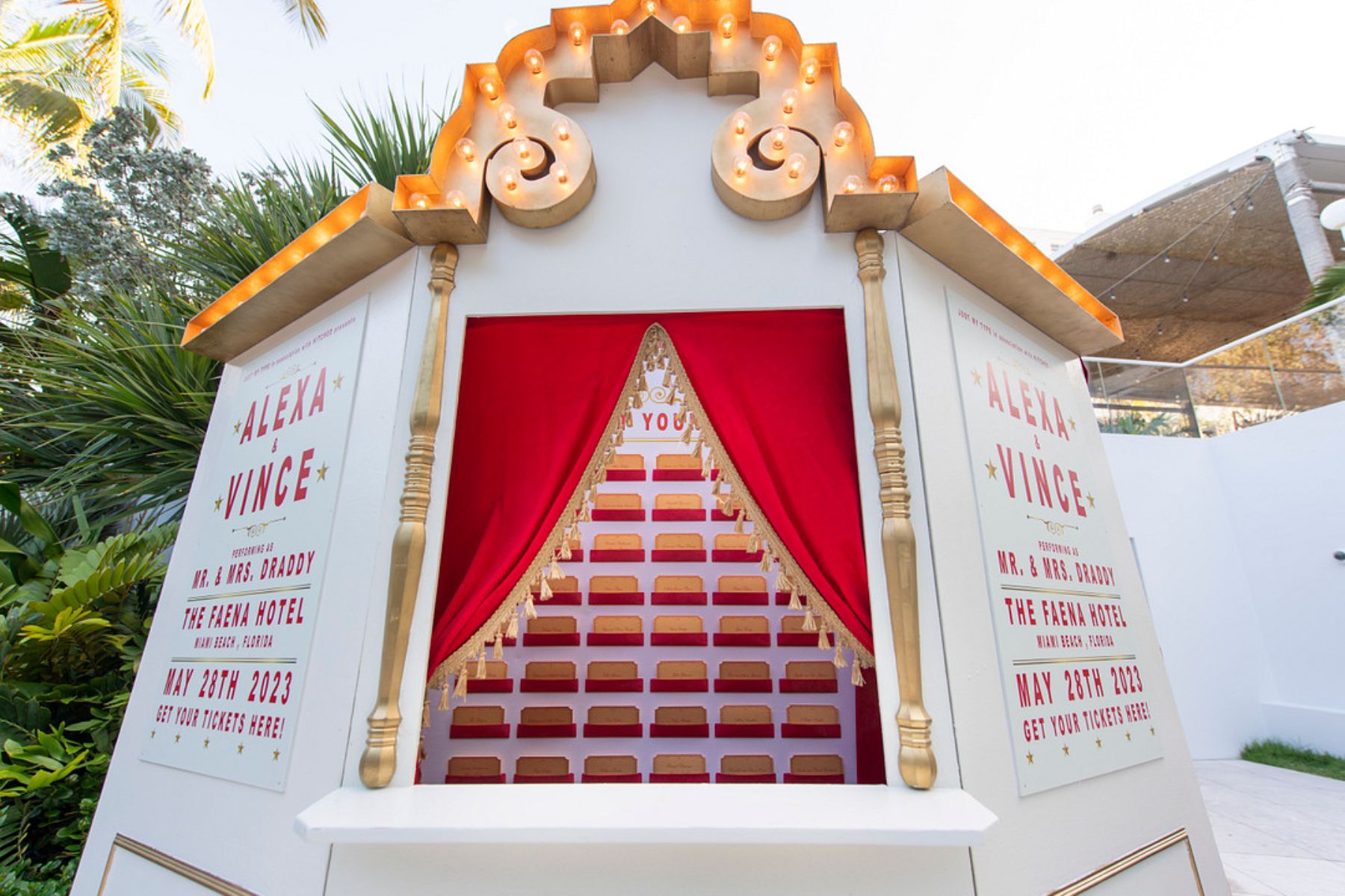 From the start, the couple knew they didn’t want a typical wedding. They envisioned their big day as a grand performance—and thanks to the incredible planning of Chris Weinberg Events, their vision came to life. Guests were treated to an unforgettable experience, stepping into the iconic Faena Theater, transformed into the couple’s very own stage.