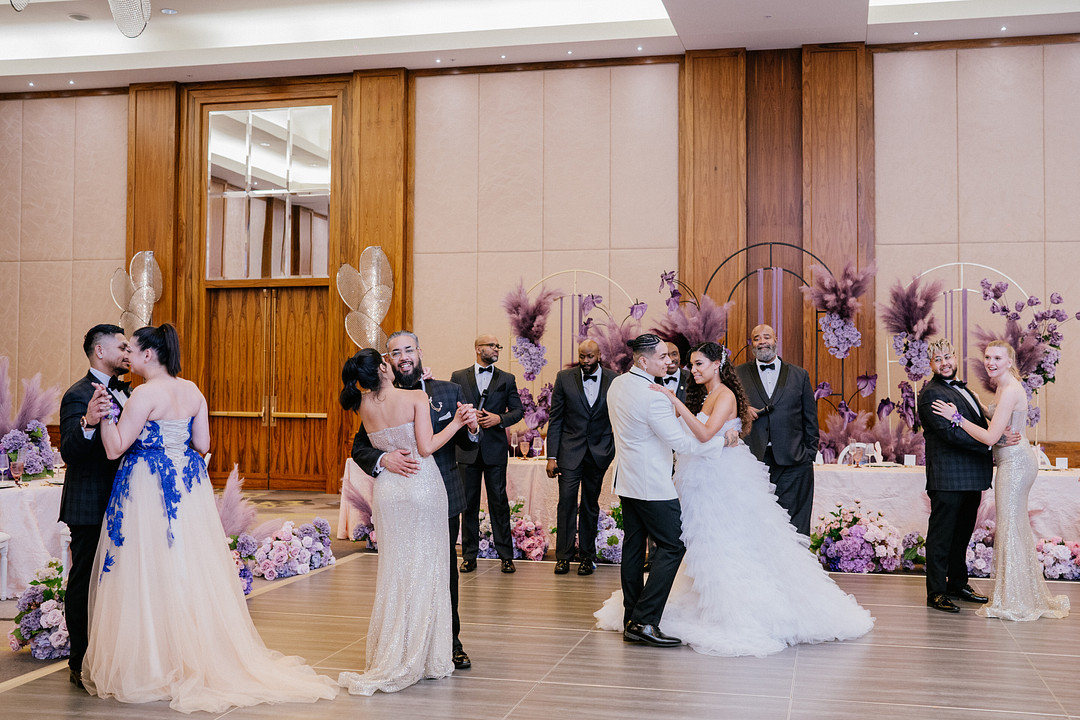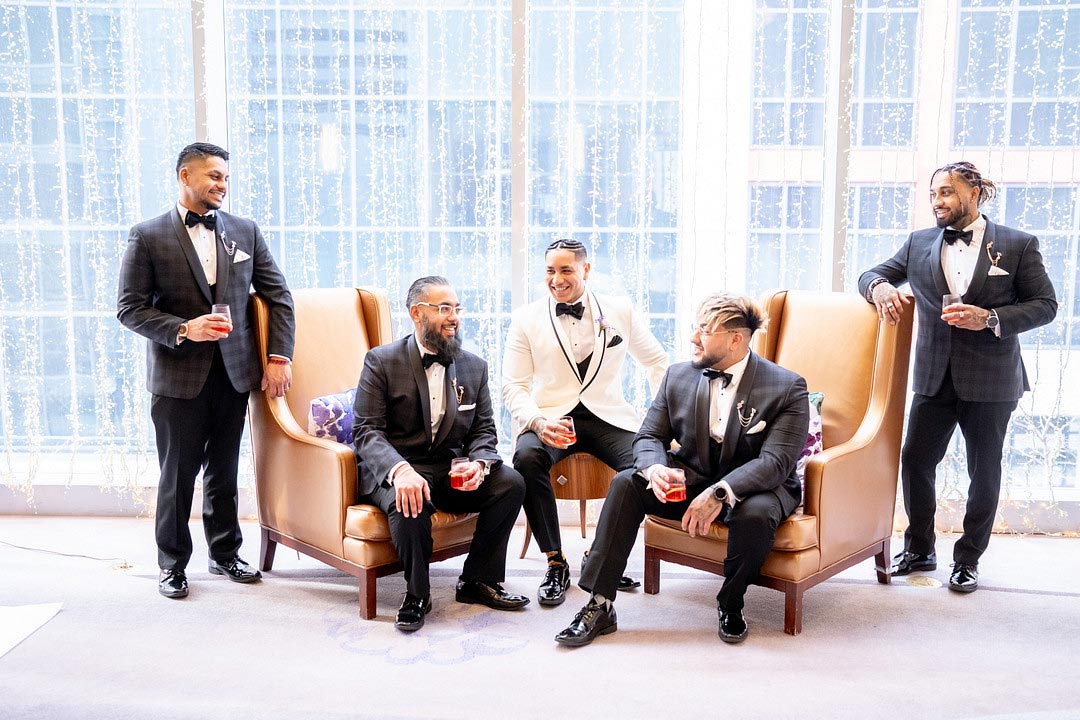 Photographer: Rosetta Li Weddings | Planner & Designer: The Wedding Planners | Day-of Coordinator: Joy Jones Lewis, Roxy Luxury Weddings | Day-of Coordinator: Lea Vainer, Impeccable Moments | Day-of Coordinator: Rosemarie Whitley | Venue: The Ritz-Carlton Toronto | Flowers & Décor: Infinitude Designs| Entertainment: Live Motown Band – BluSoul | Stationery: Royal Stationery Design | Officiant: The Hitch Doctor/ My Wedding Officiant | Dresses: Rent the Couture | Shoes: Bella Belle | Tuxedoes: Andrew’s Formals | Linens: The Linen Closet | Tabletop Rentals: Nayos Event Rentals | Furniture Rentals: Detailz Couture | Cake: Sweet and Shy Cakes | Women’s Hair & Makeup: Michele Rose Beauty | Men’s Hair: Tito’s Fades | Video: Beau Films