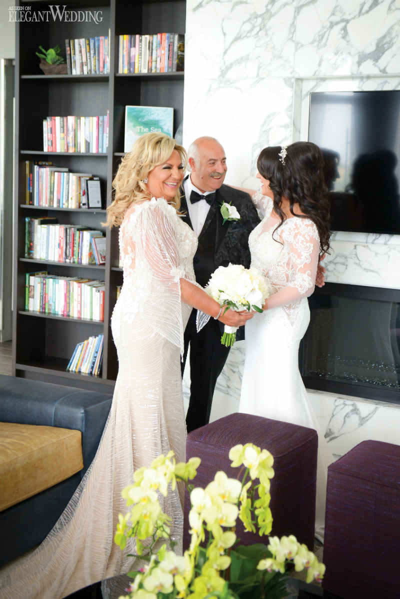 Decor, Rental, Honour Table, Silk Flowers: R5 Event Design | Fresh Flowers: Gatto Flowers | Photography: Quarum Photo & Video | Dress: Enzoani, Mona Richie Boutique | Suit: 4 Men United | Makeup: Makeup: Shannon Sansone | Hair: Elements of Hair | Accessories: Woodbridge Bridal Shoe Shop | Venue: Hotel X, Toronto | Catering: byPeterandPauls | Entertainment: Veriation Music, Shimonov Brothers, J Stixx | Live Entertainment & Singer Laura Cavacece | Wedding Planner: Fab Fête Planning Boutique | Rentals: As Special Events Party & Tent Rentals | Dance Floor: Dance Floor Graphics | Cake: Cake Creations by Michelle | Invitations & Stationery: Pearl Invitations | Video: Spotlight Films