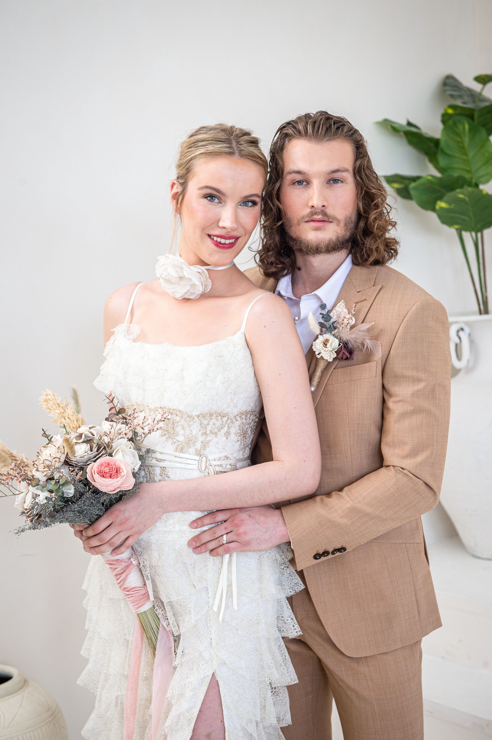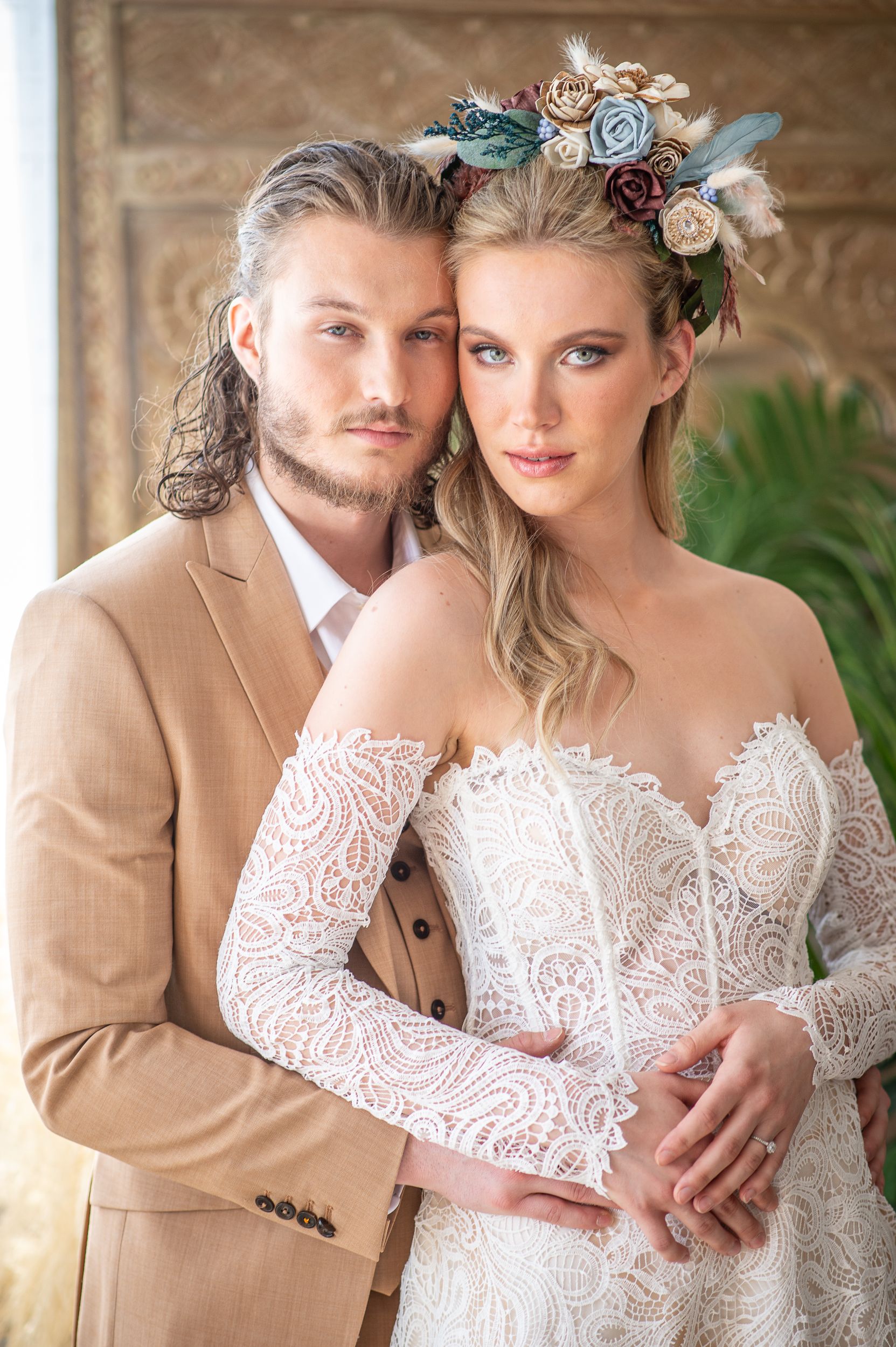 The bride and groom typically opt for bohemian-style attire. For the bride, this may include flowy and unstructured wedding dresses, flower crowns, or even barefoot sandals. Grooms might go for casual, yet stylish, attire like linen suits or vests.