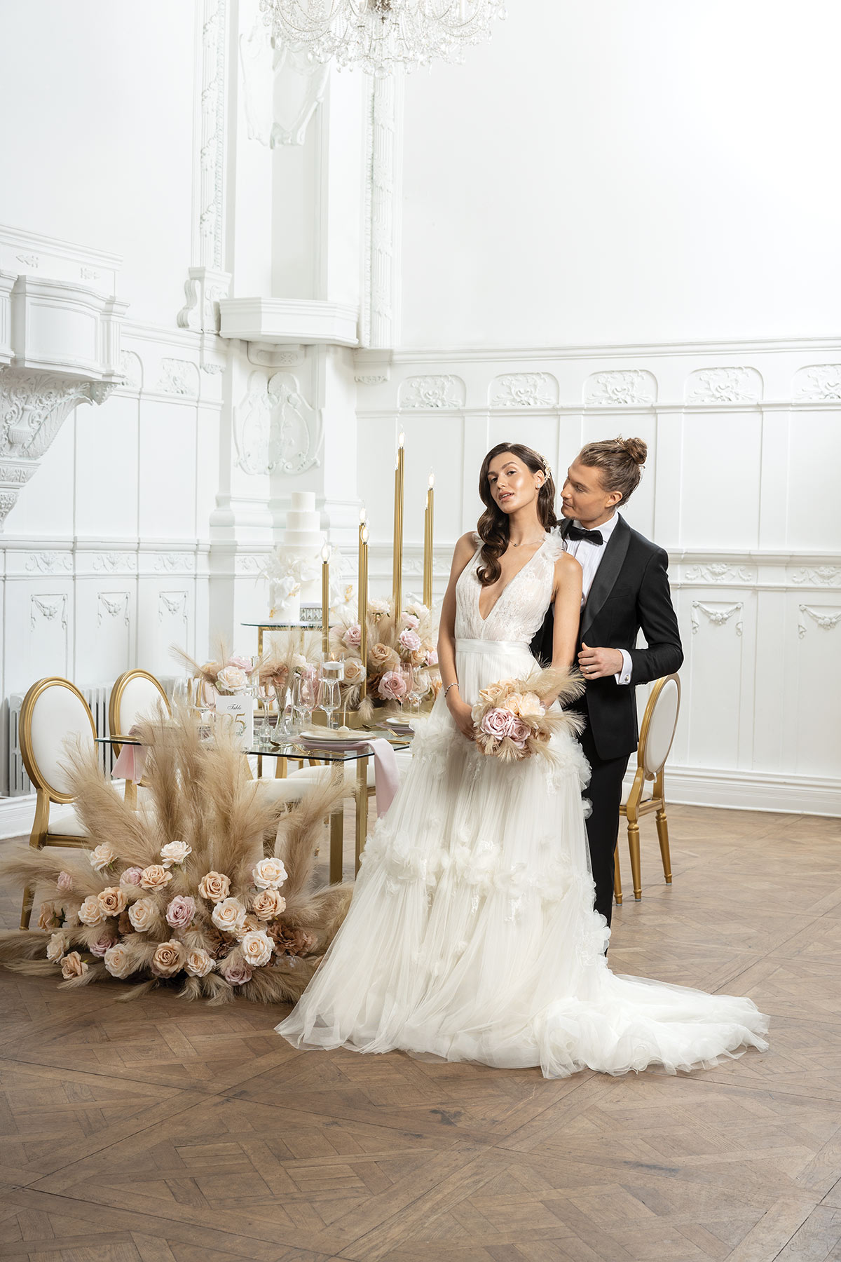 Flowers & Decor: Decor and More Events | Photography: Xposure Photographie | Venue: Maison Principale | Wedding Gown: White Montreal | Hair & Makeup: Studio Caroline Théoret | Jewellery: Eternal Diamonds | Table, Dishes & Rentals: Celebrations Group | Tuxedos: Blandin & Delloye | Cake & Sweets: Les Delices Lafrenaie