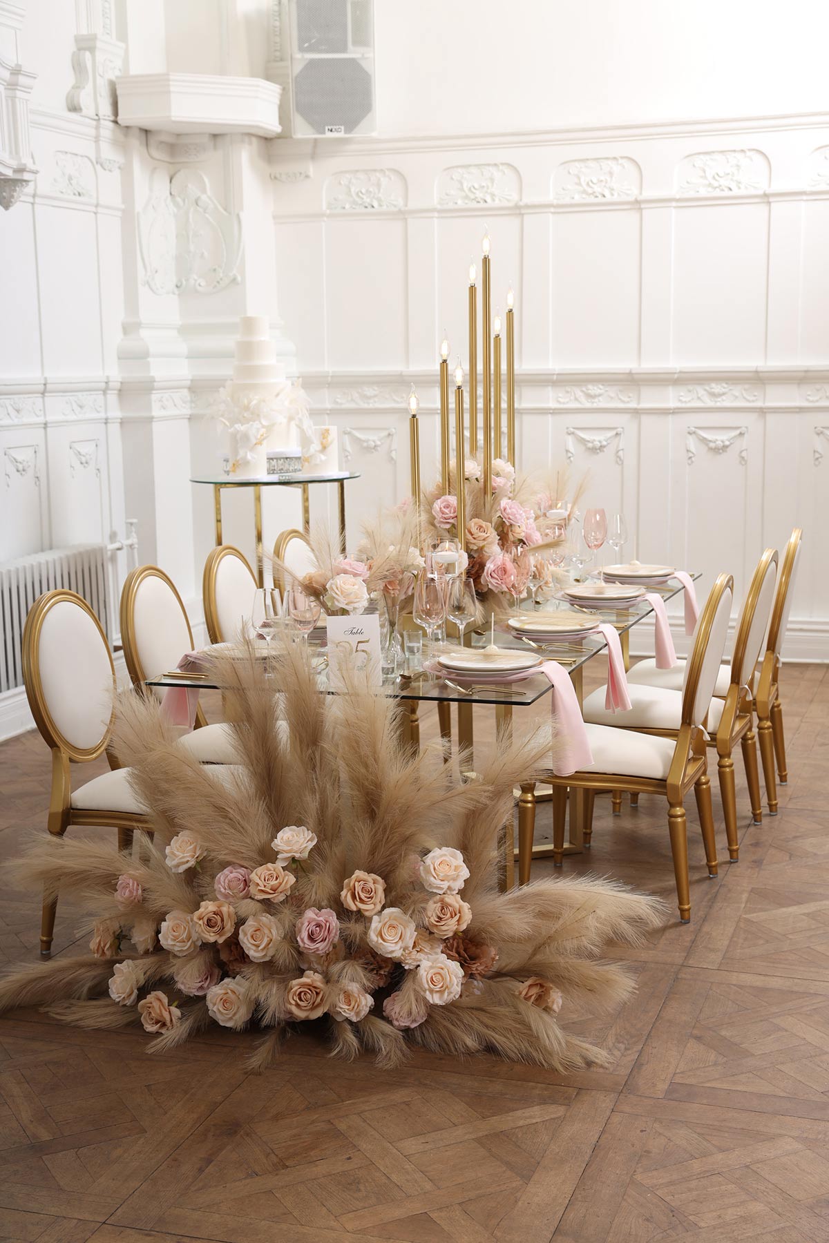 5. Pampas Grass Table Runners: Use pampas grass to create unique table runners for your reception tables. Adding other flowers and greenery creates a more colourful and textured look.