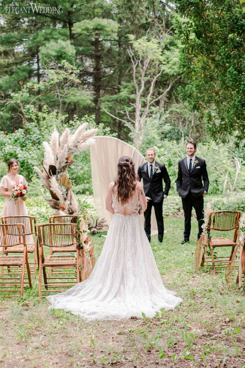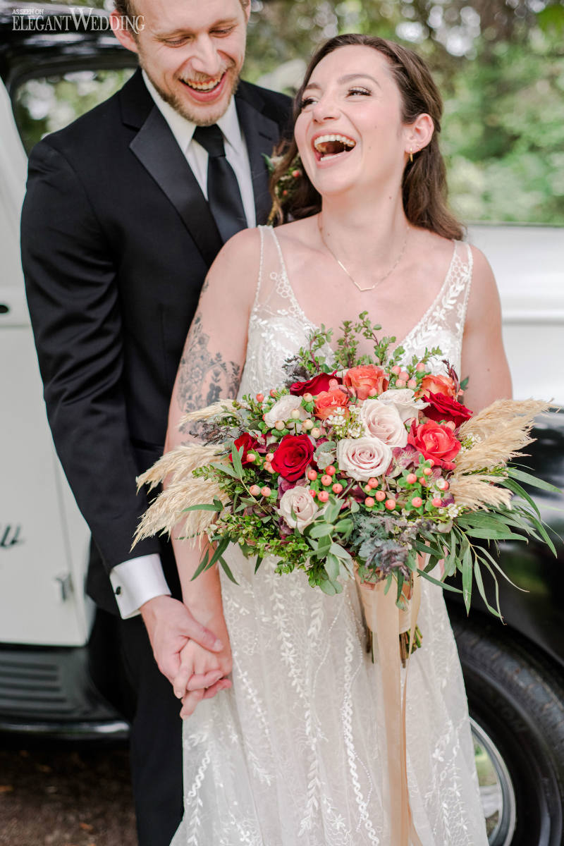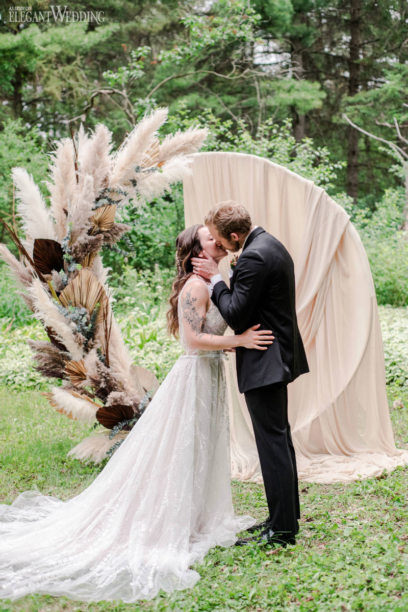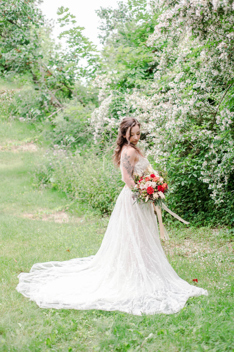 The team of vendors created this shoot to help promote small outdoor weddings. With the pandemic continuing, many couples have moved the route of still having their dream weddings with just close friends and family. Color inspired by 2021 trends – the terracotta orange and deep greens. The vintage bohemian style was to show that you can have an elegant wedding outdoors without always going the “rustic” route.