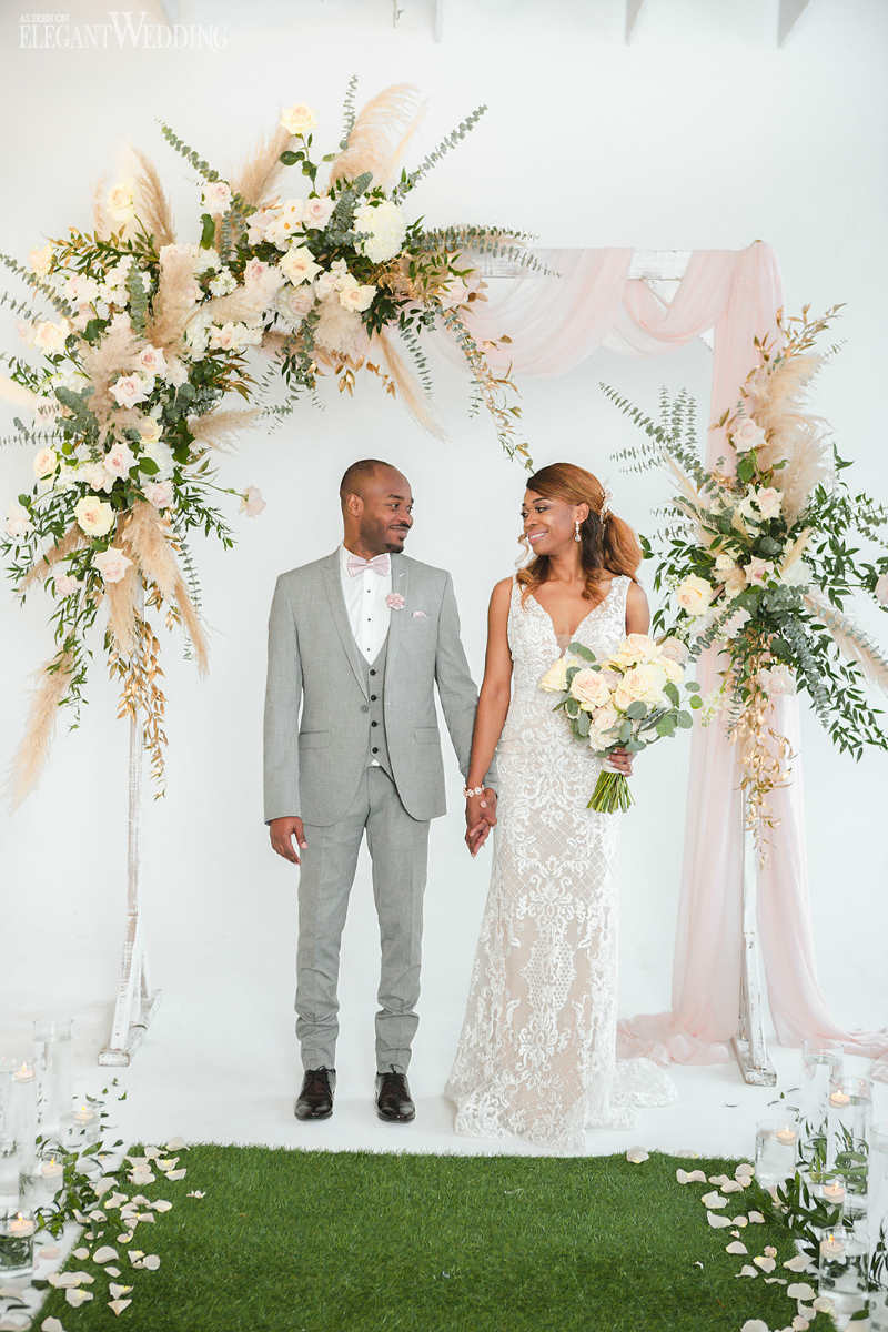 Photography: Lisa + Eddy Photography | Planning: Reine Prestige Events | Bridal dress and accessories: Château de la mariee Nadia | Flowers: Aura Design | Decor: Diva Location | Linens: Decor and More | Location: Studio leloi | Rentals: Joe’s Prop House | Invitations: Charlotte & Cie | Cake: Sweet Savour by Felicia | Makeup: Gabbie McGuire Beauty | Hair: Amelie Fatou | Groom’s Attire: Baggi Montreal | Video: Authentik Weddings | Model: Nada Piry