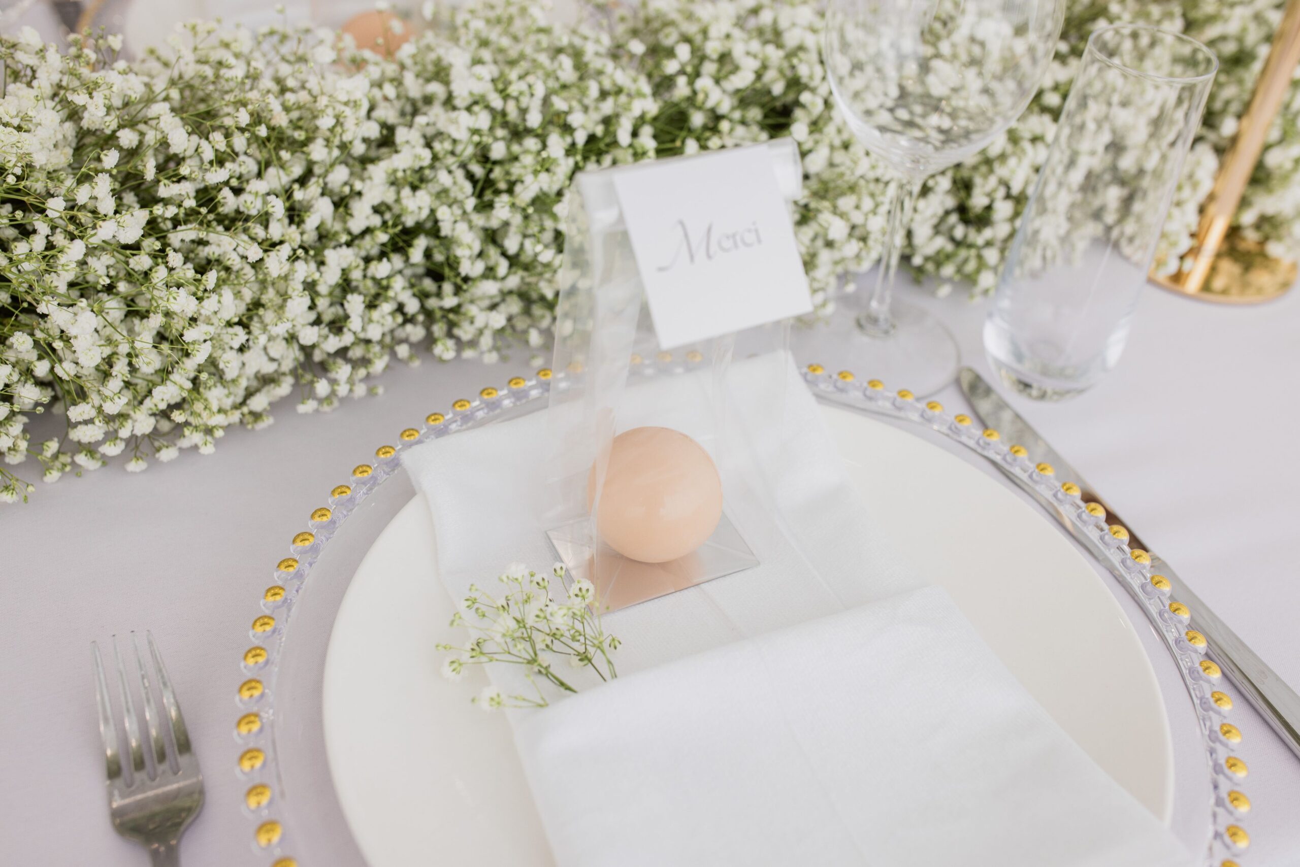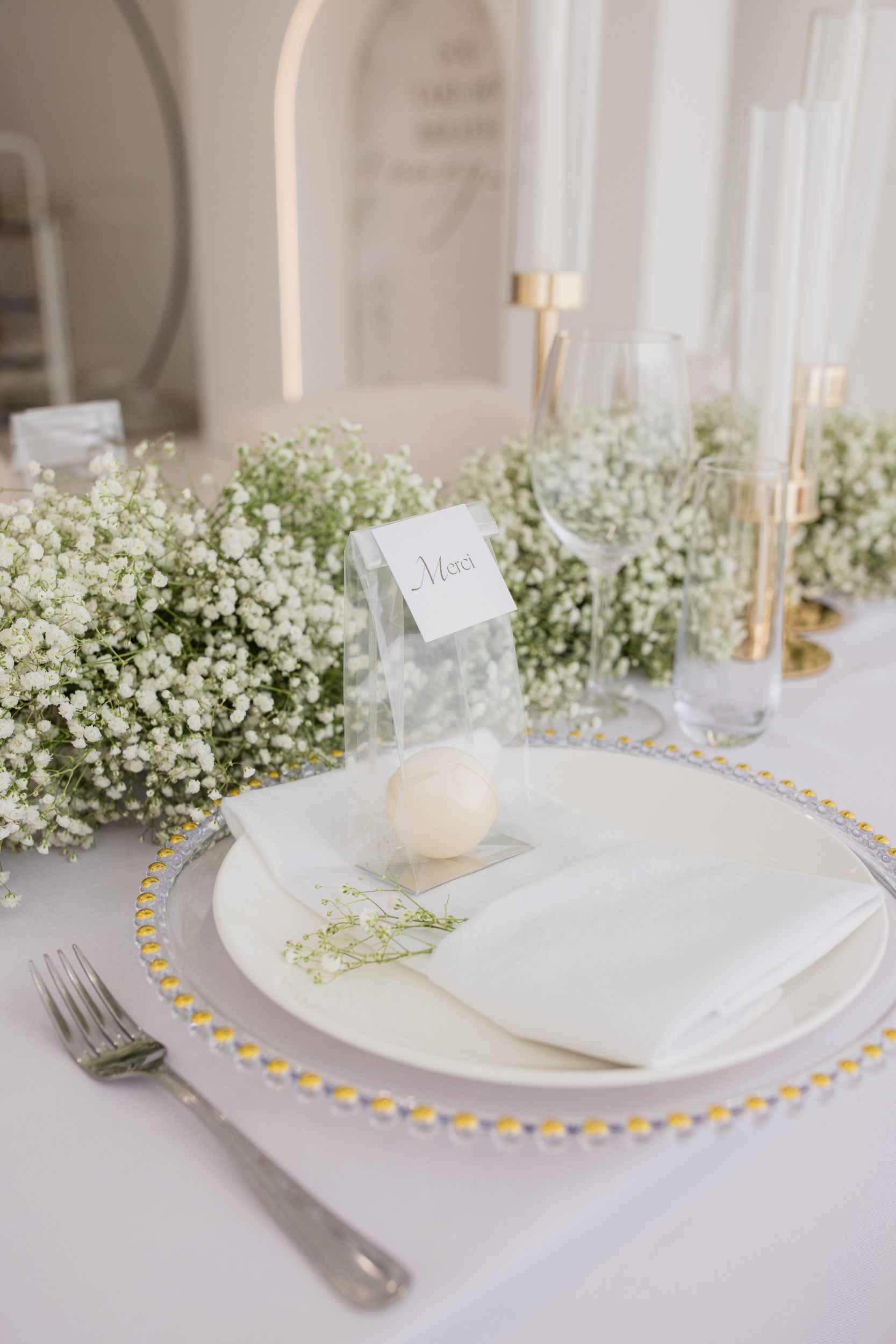 A wedding adorned with baby’s breath and soft décor creates an ethereal, fairytale-like ambiance. Our photoshoot embraced its delicate beauty with cascading floral installations and cloud-like arrangements. The table exuded romance with flowing linens, candlelight, and floral runners, adding effortless grace. Modern yet timeless details, from elegant place settings to organic textures, embodied understated luxury—perfect for a sophisticated and enchanting wedding.