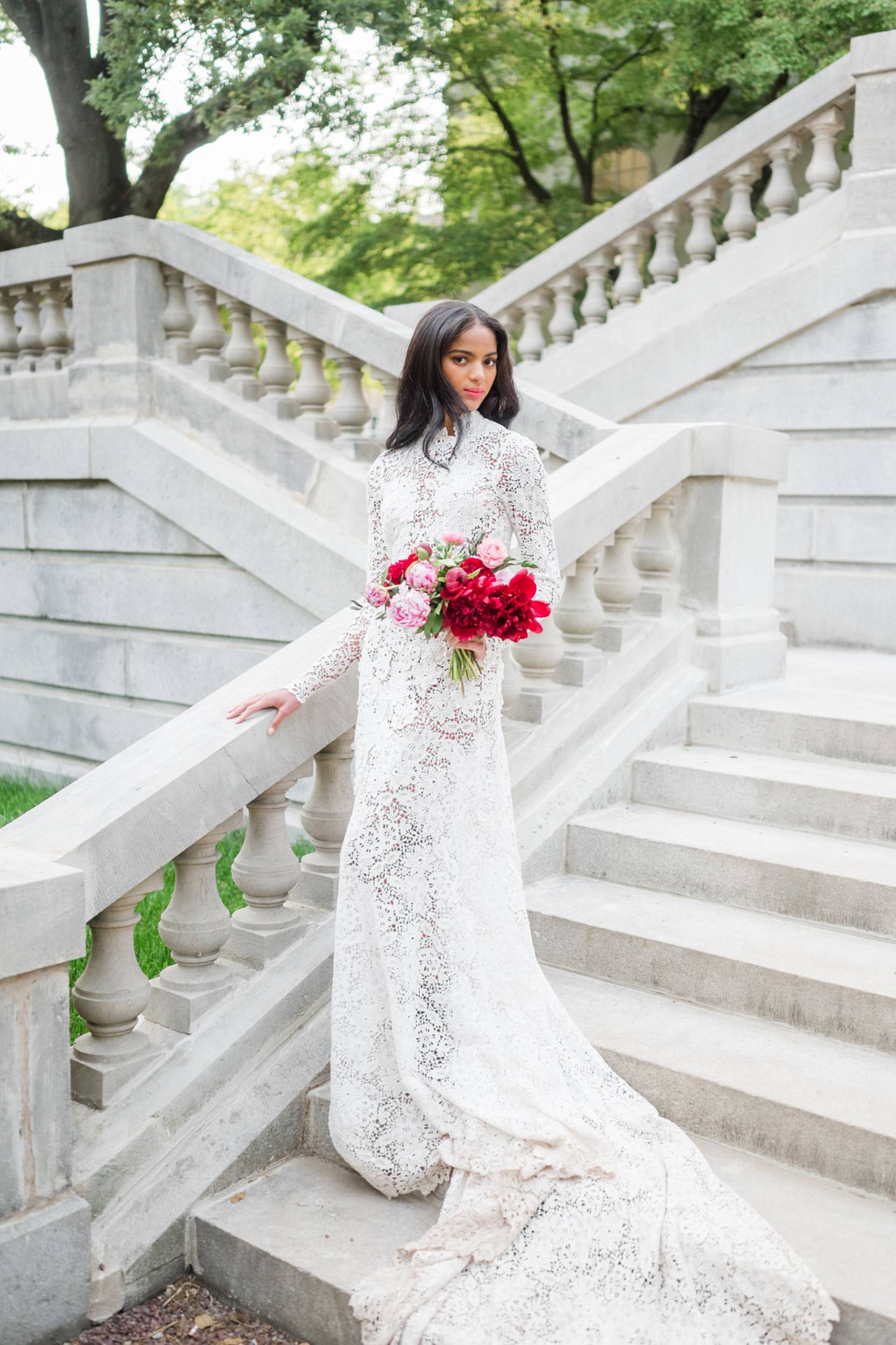 A perfect spring day, luscious florals, intricate stationery, couture dresses and jaw-dropping models made this styled wedding photoshoot a dream. Future couples hosting events at this venue throughout the property can bring their vision to life with neutral marble and white backdrops or utilize the areas with more historic art details.”
