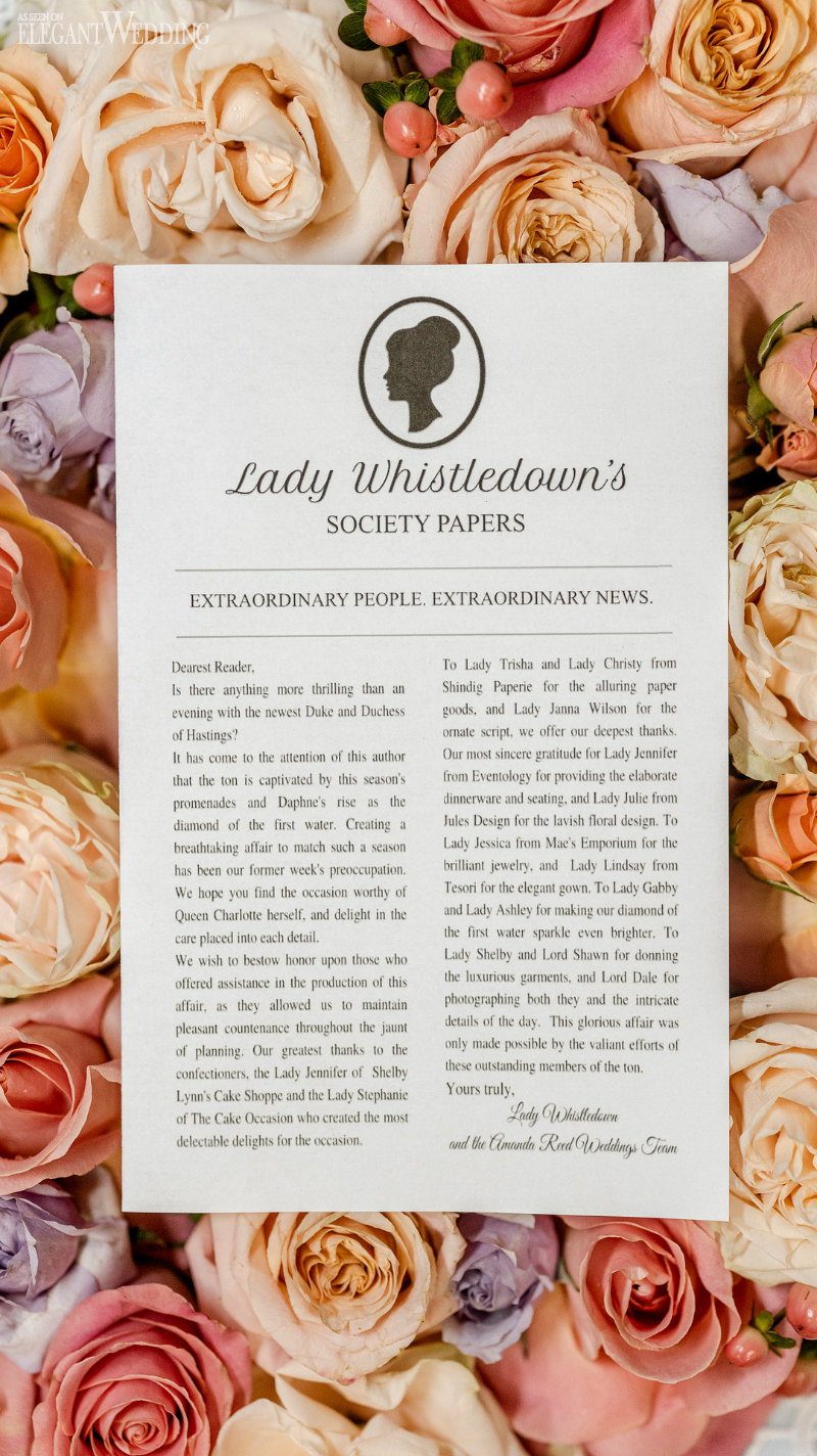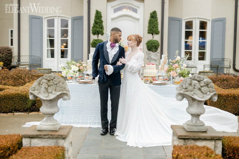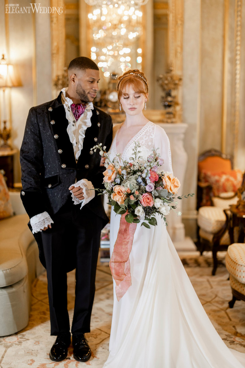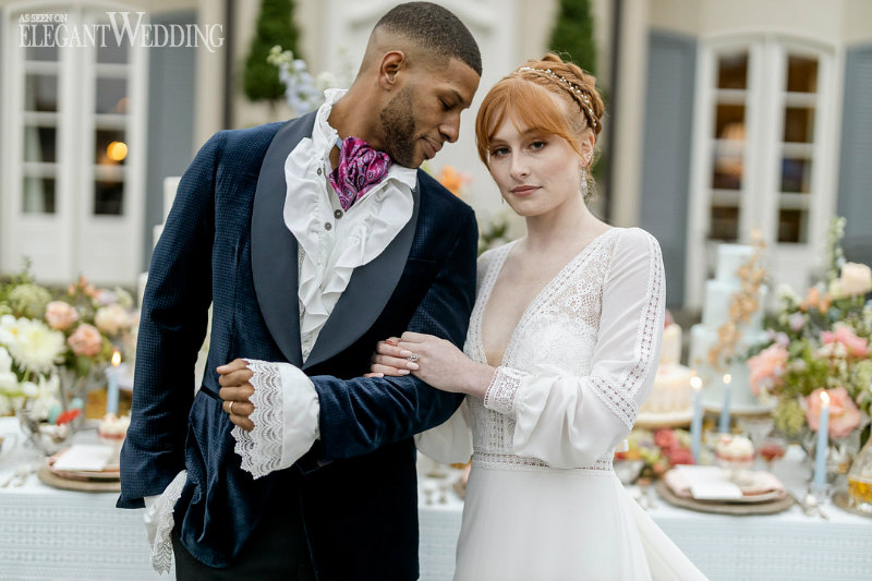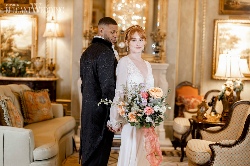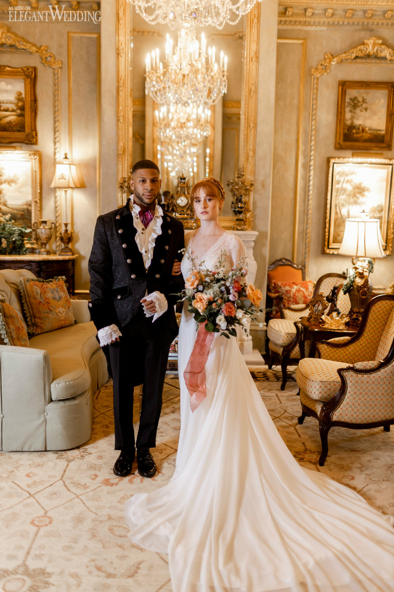 Inspired by the opulent imagery of Bridgerton on Netflix. This incredible Bridgerton wedding shows that even intimate weddings can be elegant and luxe.