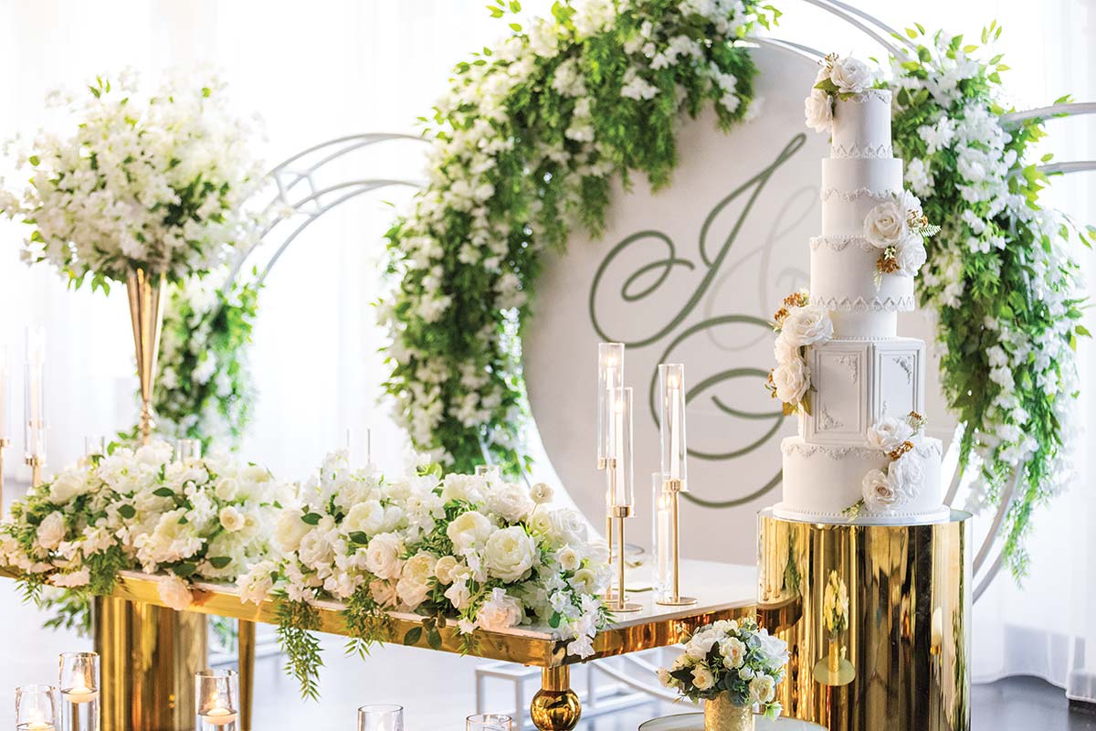 The bride’s stunning lace gown and the groom’s sharp black tuxedo add a modern touch to this timeless palette. And let’s not forget the jaw-dropping cake adorned with intricate white roses—a true centerpiece that ties the theme together seamlessly.