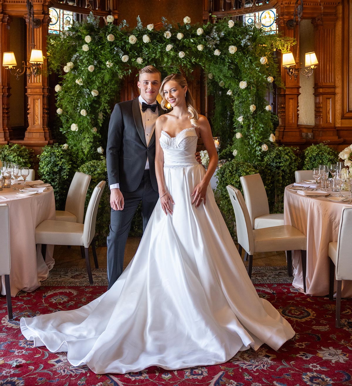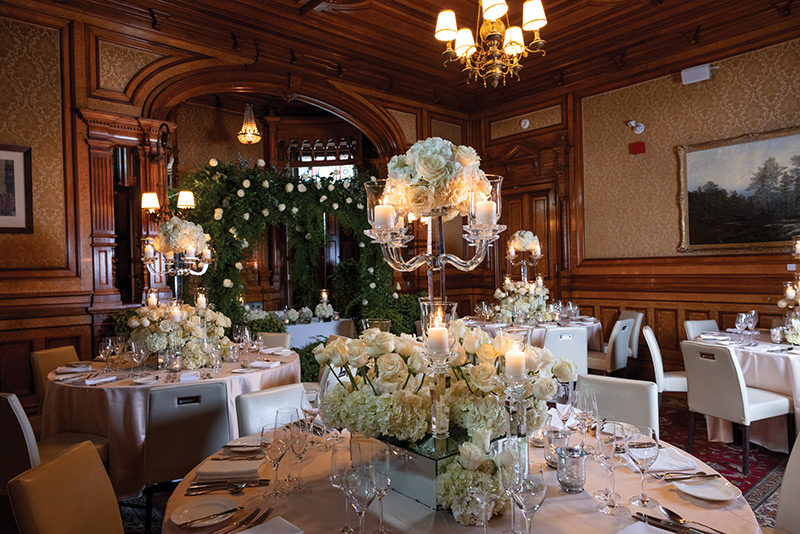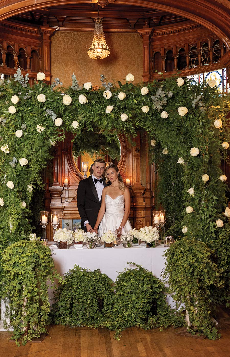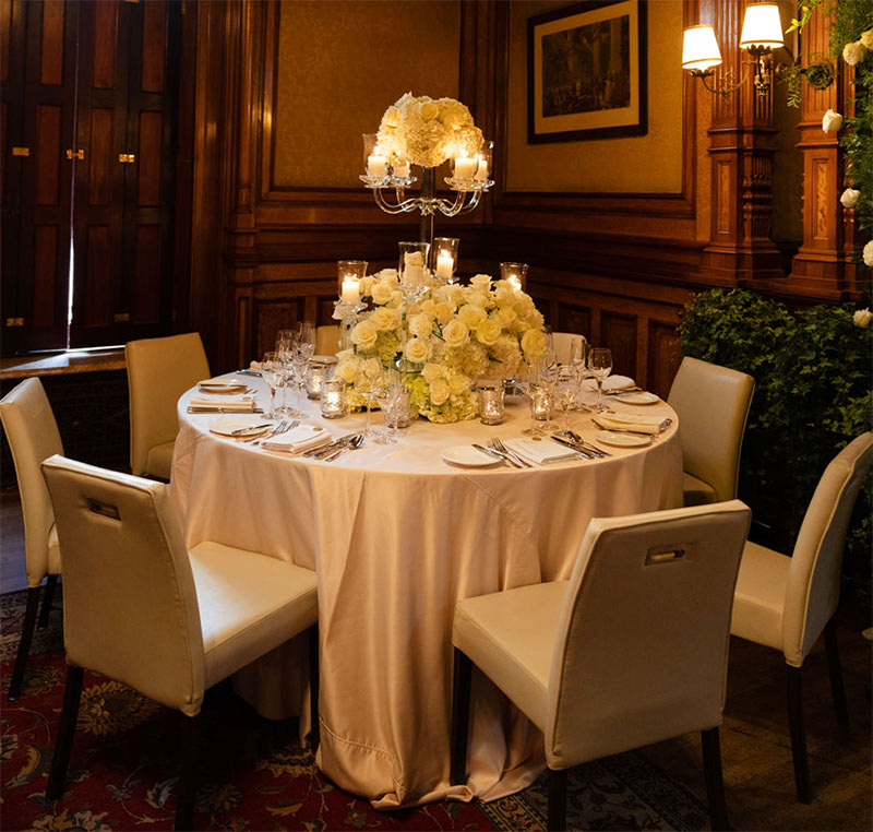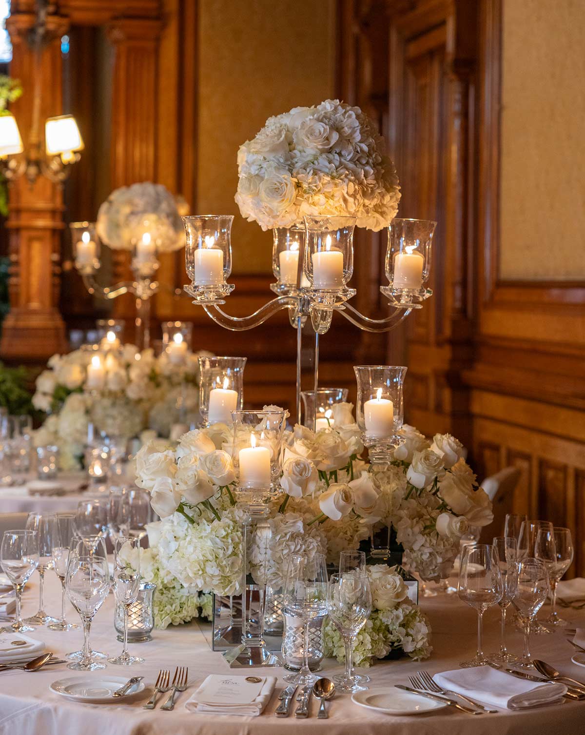 As for the venue, it was adorned with gorgeous florals crafted by the talented Alain Simon Fleurs. Lush arrangements of roses, greenery, and delicate blooms seamlessly transformed the space into a romantic haven. Each floral detail further enhanced the venue’s historic charm, creating a dreamlike atmosphere for the couple and their guests to enjoy.