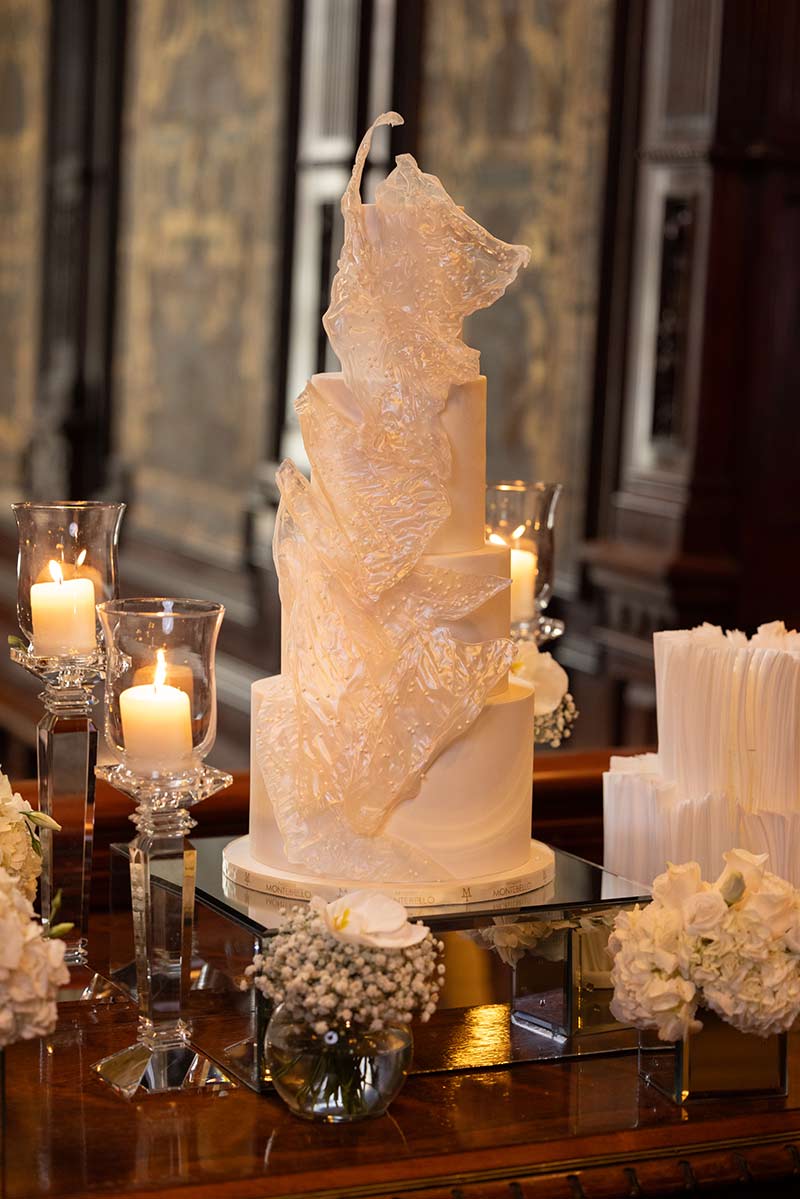 The cake, elegantly simple, featured delicate floral accents that perfectly tied together the day’s theme.