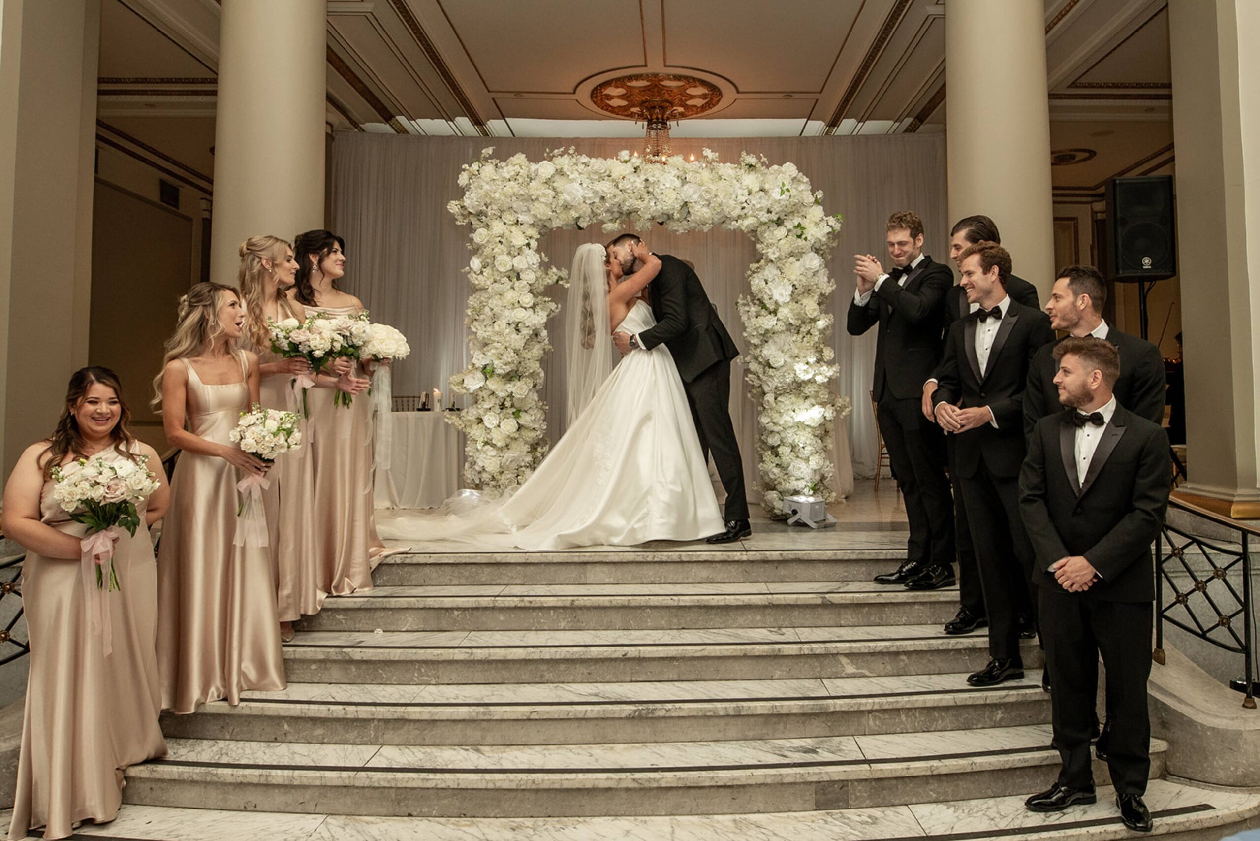 With its rich history and romantic charm, Montreal provided the perfect backdrop for a stunning white and gold wedding that left guests spellbound. The event at the elegant Le Windsor Ballroom in Montreal was a testament to sophistication and timeless beauty, meticulously crafted by some of the city’s finest vendors.
