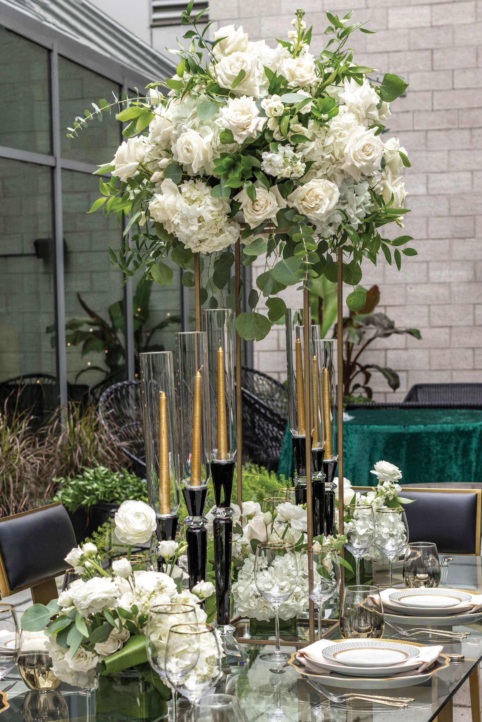 This stunning theme evokes a sense of timeless elegance and natural splendour, creating a breathtaking aesthetic that captures the essence of romance and luxury. The lush greenery symbolizes growth, harmony, and renewal, creating a backdrop that signifies the beginning of a beautiful journey together. The combination becomes a visual masterpiece when intertwined with the regal allure of gold accents. With its luxurious and warm tones, gold adds a touch of sophistication and grandeur, turning every element into a radiant spectacle. These amazing vendors created a stunning feature.